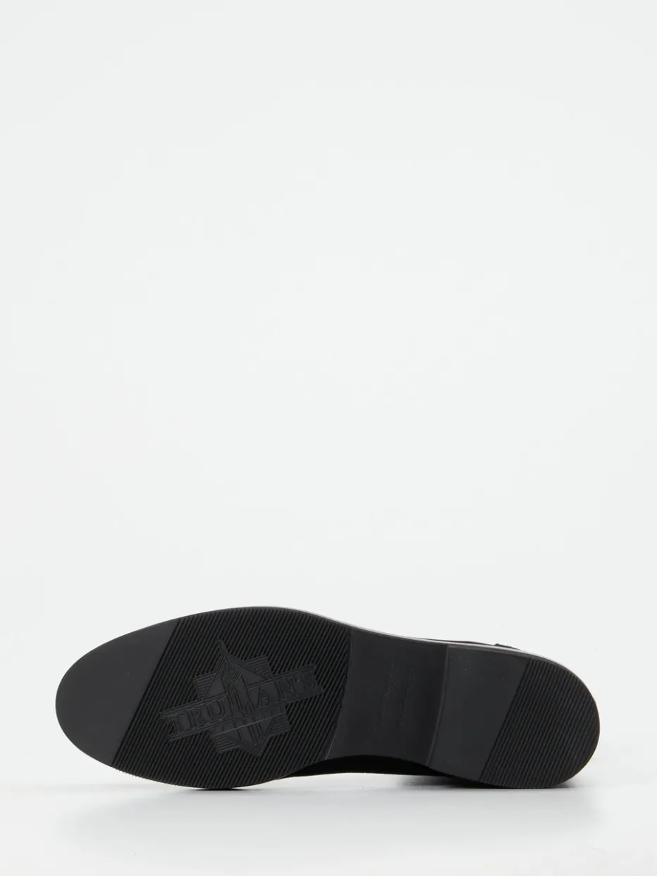 Stilvoll reduziert für urbane Looks.Die Marke Truman’s präsentiert eine zeitlose Stiefelette, die Minimalismus und Qualität vereint. Ob im Büroalltag oder in der Freizeit – das tiefschwarze Veloursleder mit samtiger Oberfläche und tonigen Nähten macht diese Stiefelette zu einem modernen Allrounder. Die schmale, gerade Silhouette wird durch einen hinten platzierten Reißverschluss mit dezentem Druckknopf ergänzt. Eine rutschhemmende Gummisohle und flexible Schafteigenschaften sorgen für bequemen Einstieg und angenehmes Tragen. Der puristische Look entspricht aktuellen Quiet Luxury- und Monochrome-Trends. Ein stilvolles Statement aus handwerklicher Wertarbeit – von Truman’s geschaffen.