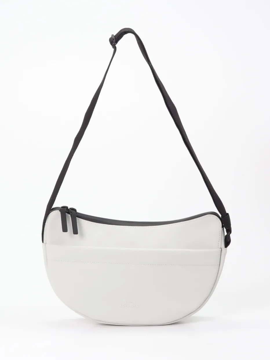 Diese minimalistische Halfmoon Bag von Ucon Acrobatics verbindet urbane Ästhetik mit nachhaltigen Materialien aus recycelten Textilabfällen.