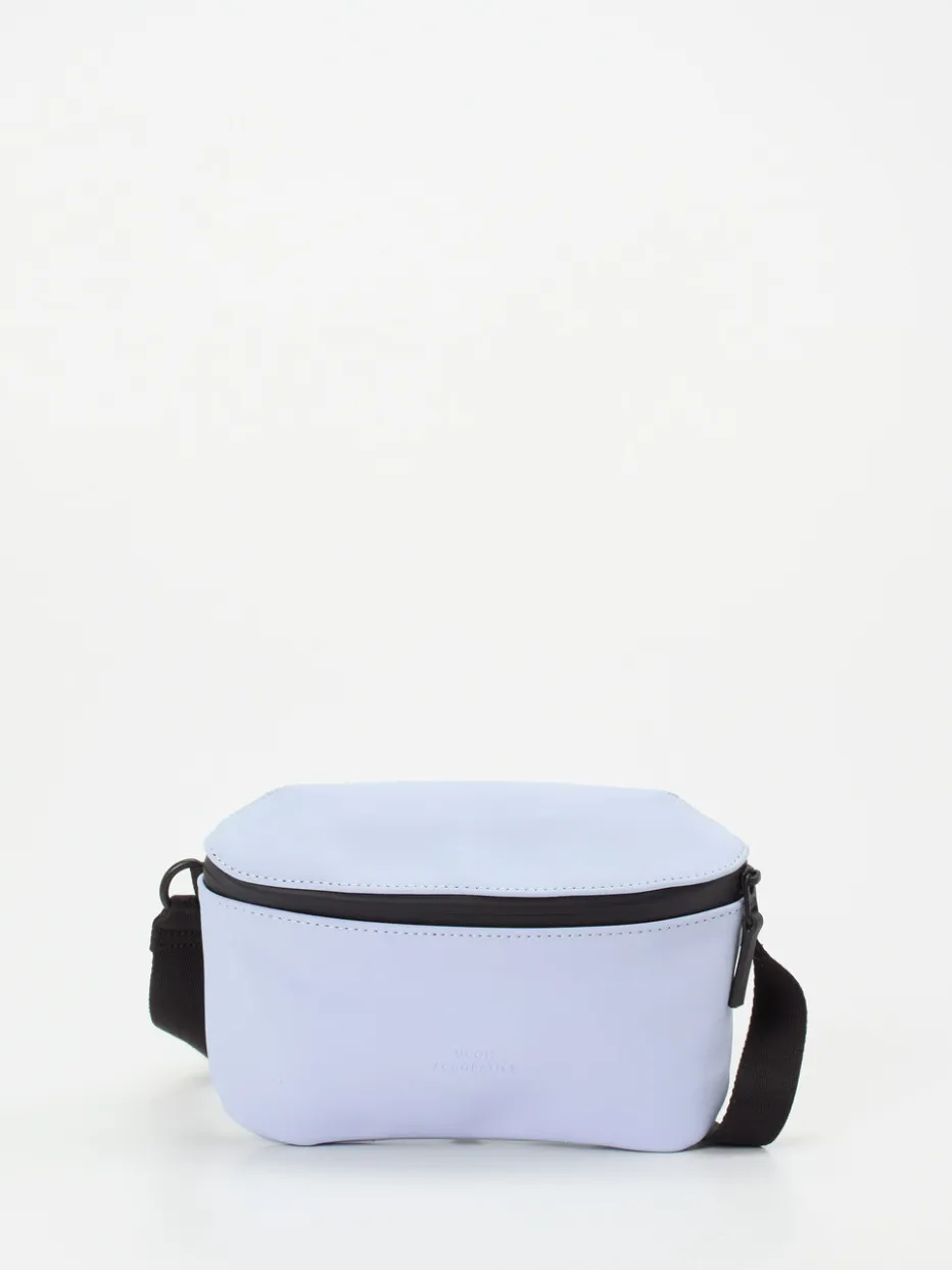 Die minimalistische Bauchtasche überzeugt mit mattem, veganem Tech-Material und einem smarten Zwei-Wege-Reißverschluss – ein funktionaler Begleiter im angesagten Pastellton.