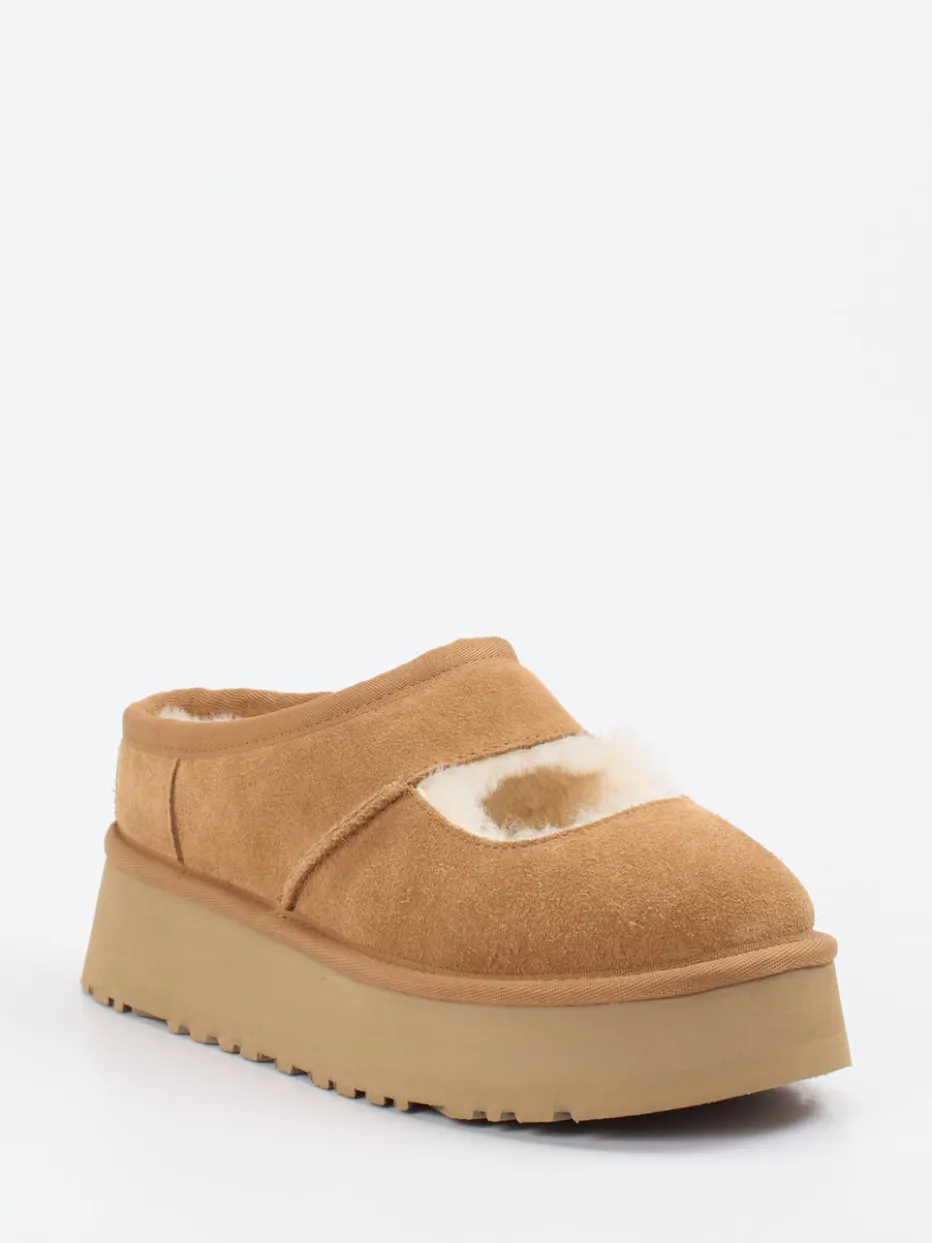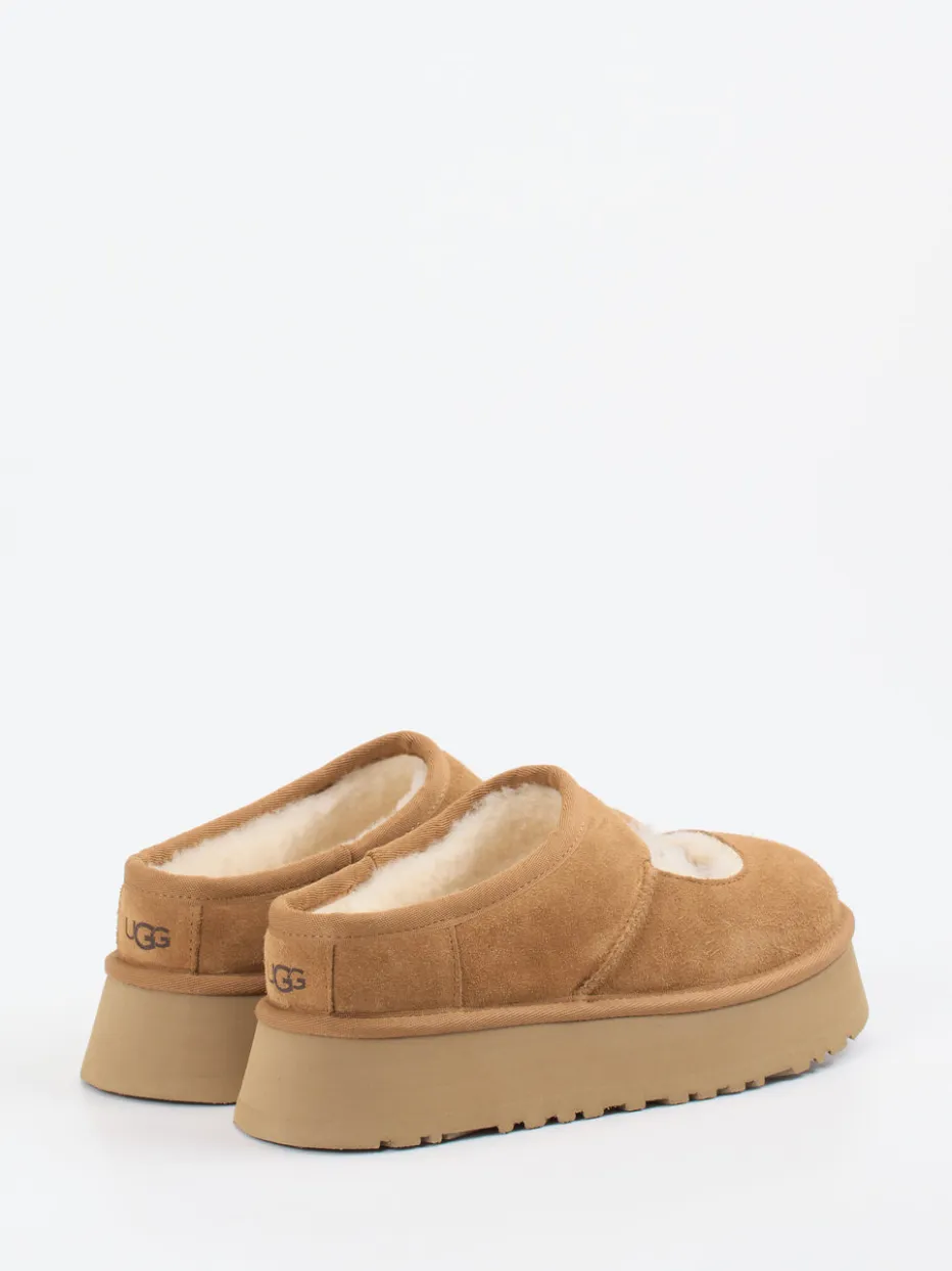 Damen UGG – Plattform-Pantolette aus Veloursleder Karamell