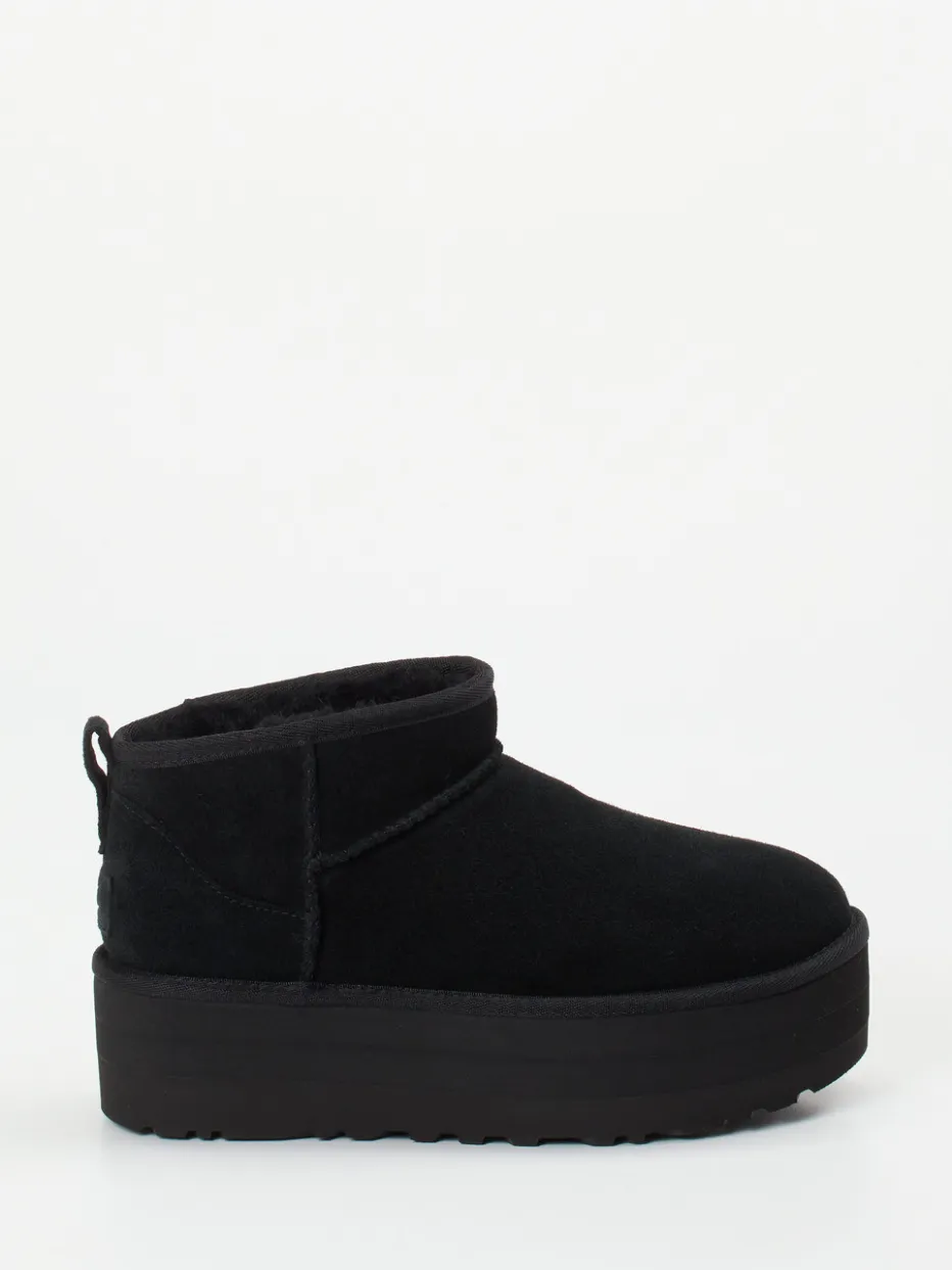 Die gefütterte UGG-Stiefelette verbindet veloursweiches Obermaterial mit einer markanten Plateausohle – ideal für zeitgemäßen Streetstyle bei winterlichen Temperaturen.