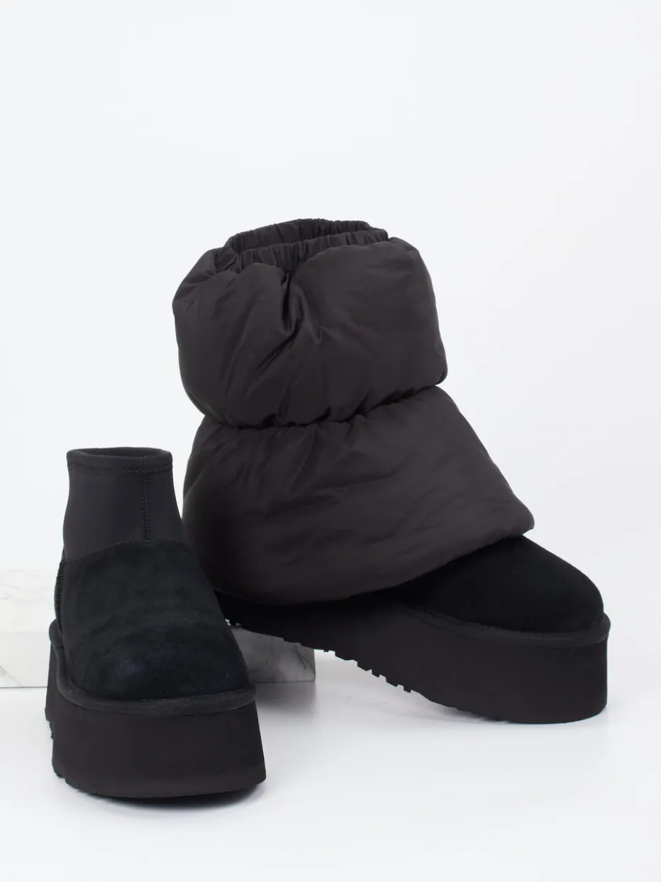 Die voluminöse UGG-Stiefelette kombiniert samtiges Veloursleder mit gestepptem Nylon und liegt mit Puffer-Schaft und Plateau voll im Trend. Perfekt für kalte Tage mit Stilanspruch.