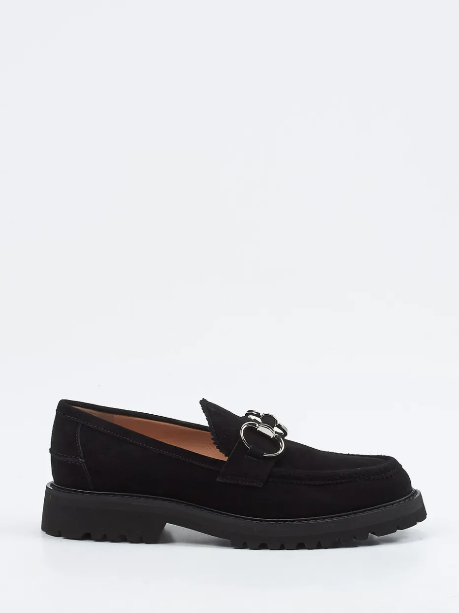 Stilstatement für moderne Klassik.Der Damen-Loafer von Unützer kombiniert italienische Handwerkskunst mit urbaner Eleganz. Ideal für Citylooks und stilvolle Business-Outfits bietet der Slipper aus schwarzem Veloursleder, samtig angeschliffen, eine weiche Haptik und eine hochwertige Anmutung. Die klassische, flache Silhouette wird durch eine ausgeprägt profilierte Leichtzellsohle akzentuiert, die sowohl optisch als auch funktional überzeugt. Eine silberfarbene Zierspange sowie ein gezackter Schaftabschluss sorgen für dezenten Glamour im „Quiet Luxury“-Stil. Die Mokassinnaht unterstreicht die heritage-inspirierte Formsprache dieses Trendstücks für Herbst/Winter. Unützer verbindet zeitgemäßen Komfort mit luxuriös reduzierter Ästhetik.