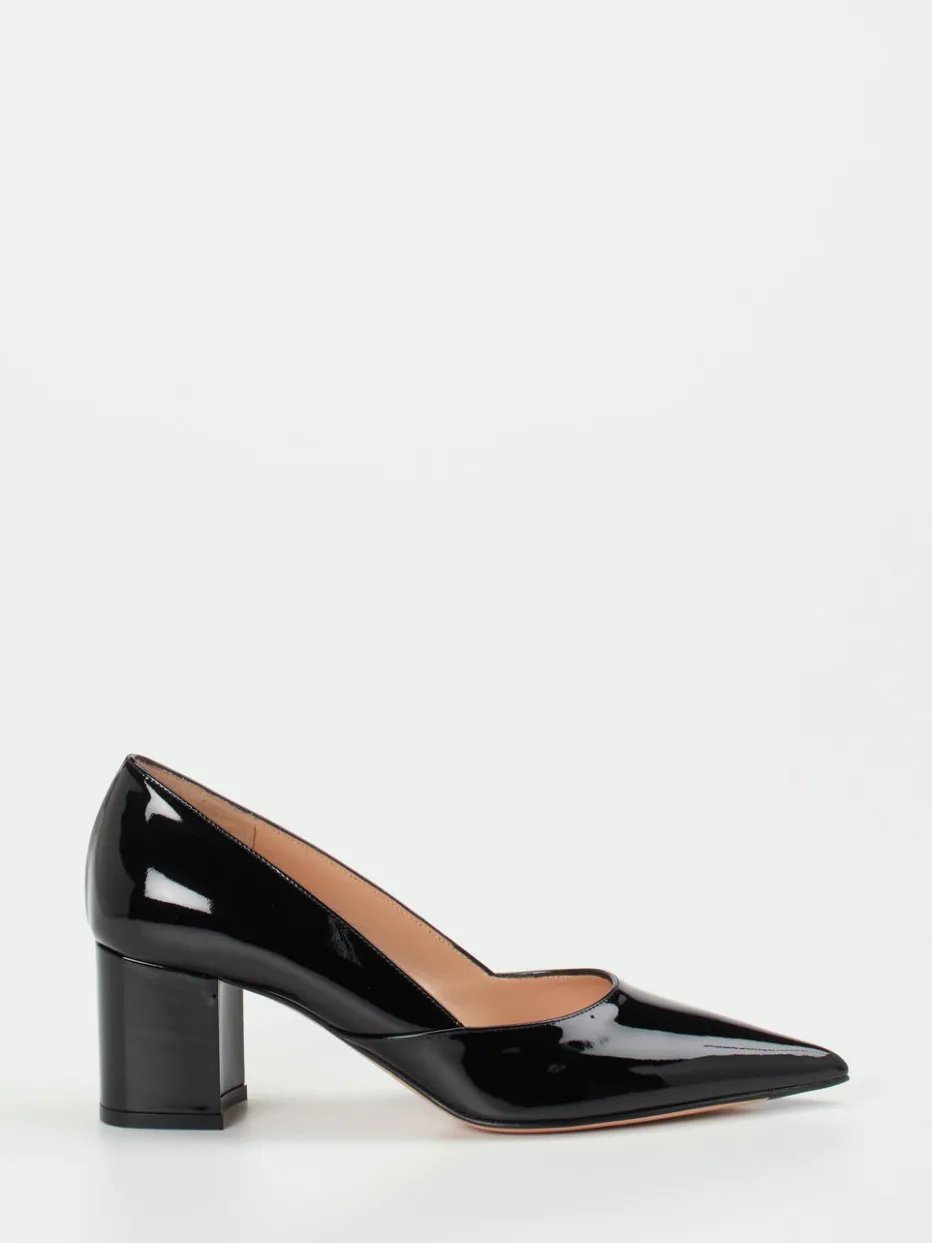 Elegante Lackleder-Pumps mit klarer Silhouette und komfortablem Blockabsatz – ein stilvoller Begleiter zwischen Minimalismus und Classic Chic.