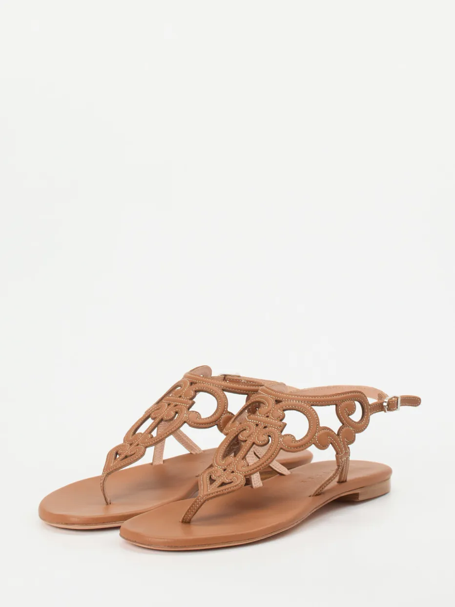 Unützer verbindet bei dieser flachen Sandale kunstvolle Lederstanzung mit exzellenter Verarbeitung. Eine stilvolle Wahl für warme Tage – minimalistisch und doch raffiniert.