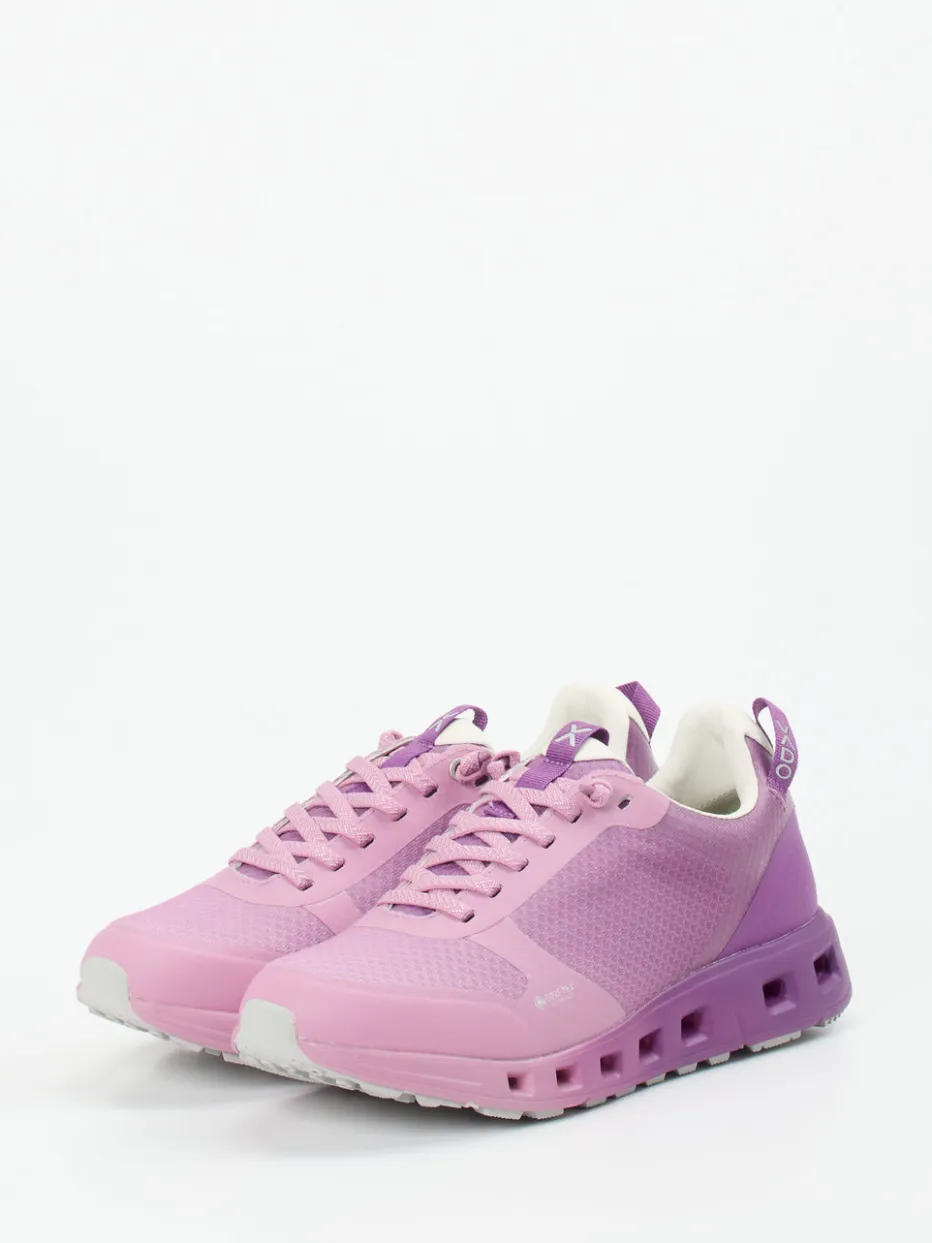 Sportlich-trendiger Begleiter für urbanen Style.Dieser Damen-Sneaker von Vado überzeugt mit innovativer Funktion und moderner Optik. Perfekt für aktive Tage in der Stadt oder Outdoor-Momente bei wechselhaftem Wetter eignet sich das Modell durch wind- und wasserdichte Materialien. Der Rosa-Violett-Verlauf inszeniert den atmungsaktiven Mesh-Einsatz modisch, während reflektierende Details sowie Zugschlaufe und Branding sportive Akzente setzen. Dank GORE-TEX®-Ausstattung, perforierter Einlegesohle und flexibler Gummisohle mit Dämpfungszonen trägt sich der Sneaker auch über Stunden angenehm. Ein Tech-Styling-Hit für Streetwear-Fans. Verbindet technische Performance mit trendbewusstem Look – typisch Vado.