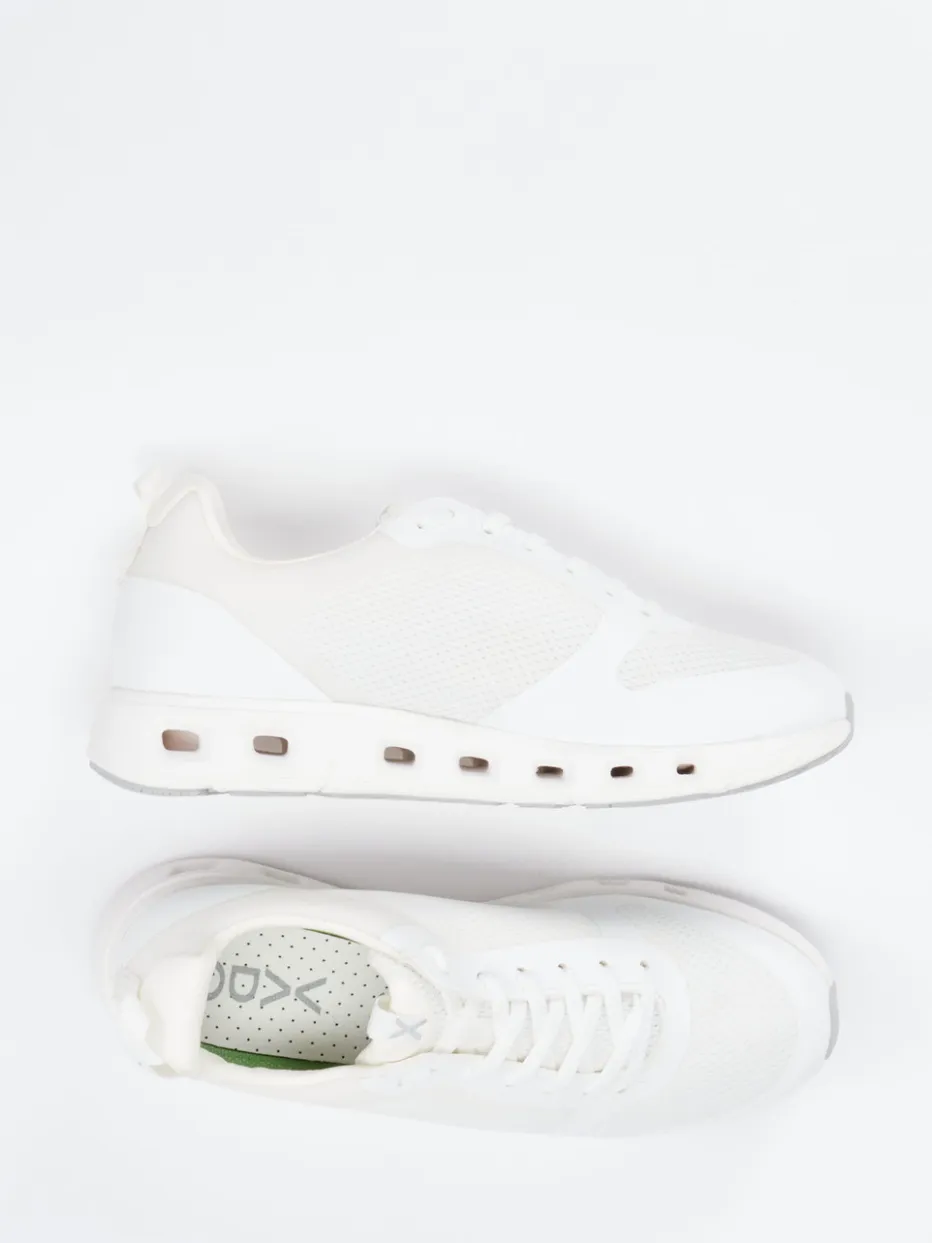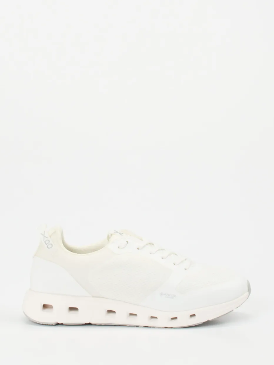 Technik trifft Leichtigkeit im Alltag. Vado präsentiert mit diesem Low-Top-Sneaker ein Modell für Damen, das atmungsaktive Funktion mit reduziertem Design vereint. Das weiße Obermaterial aus Mesh und Synthetik wirkt matt und ist dank GORE-TEX®-Membran wasserabweisend. Die perforierte Struktur optimiert die Belüftung, während das sportliche Profil mit Dämpfungselementen und pastellgrünen Sohlenakzenten modern interpretiert wirkt. Die verstärkte Zehenkappe, Schnürung und Zuglasche betonen die klassische Sneakerform. Für dynamische Freizeitaktivitäten ausgelegt, überzeugt der Schuh mit Leichtigkeit und cleverem Komfort. Ideal auch im Trendkontext alltagstauglicher Tech-Fashion. Funktional designter Komfort mit dem Anspruch an Stil – typisch Vado.