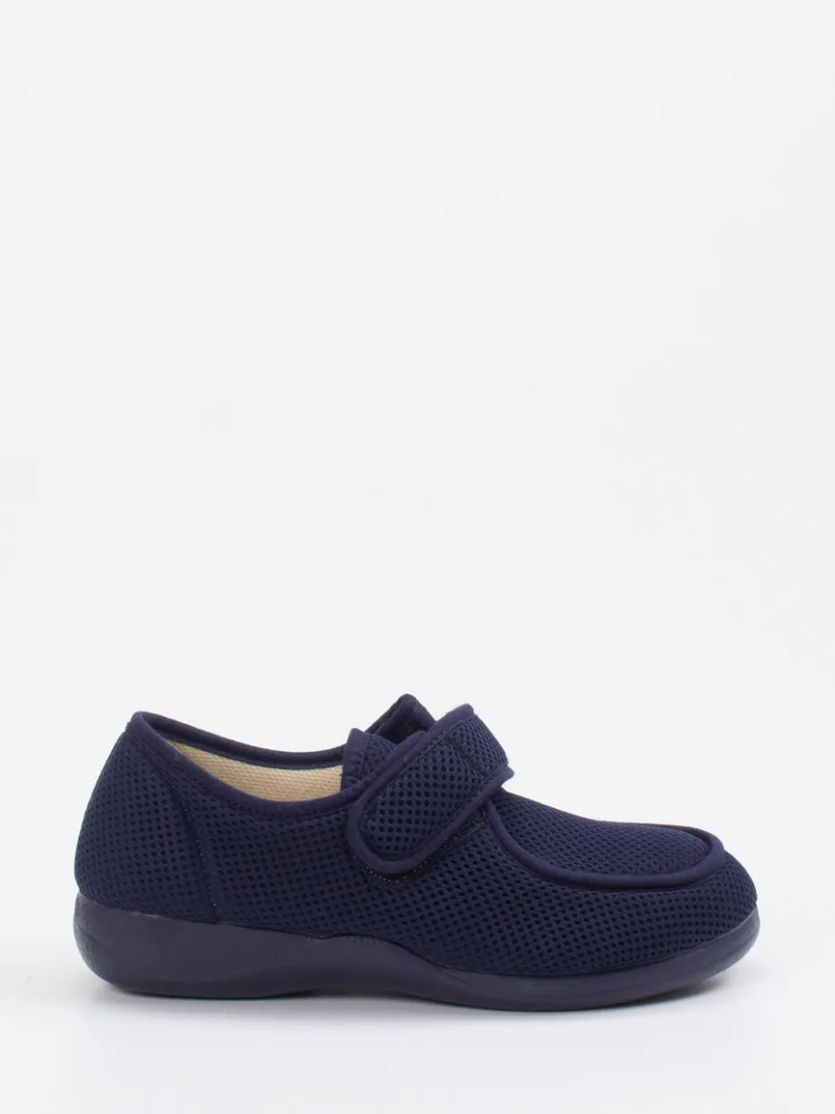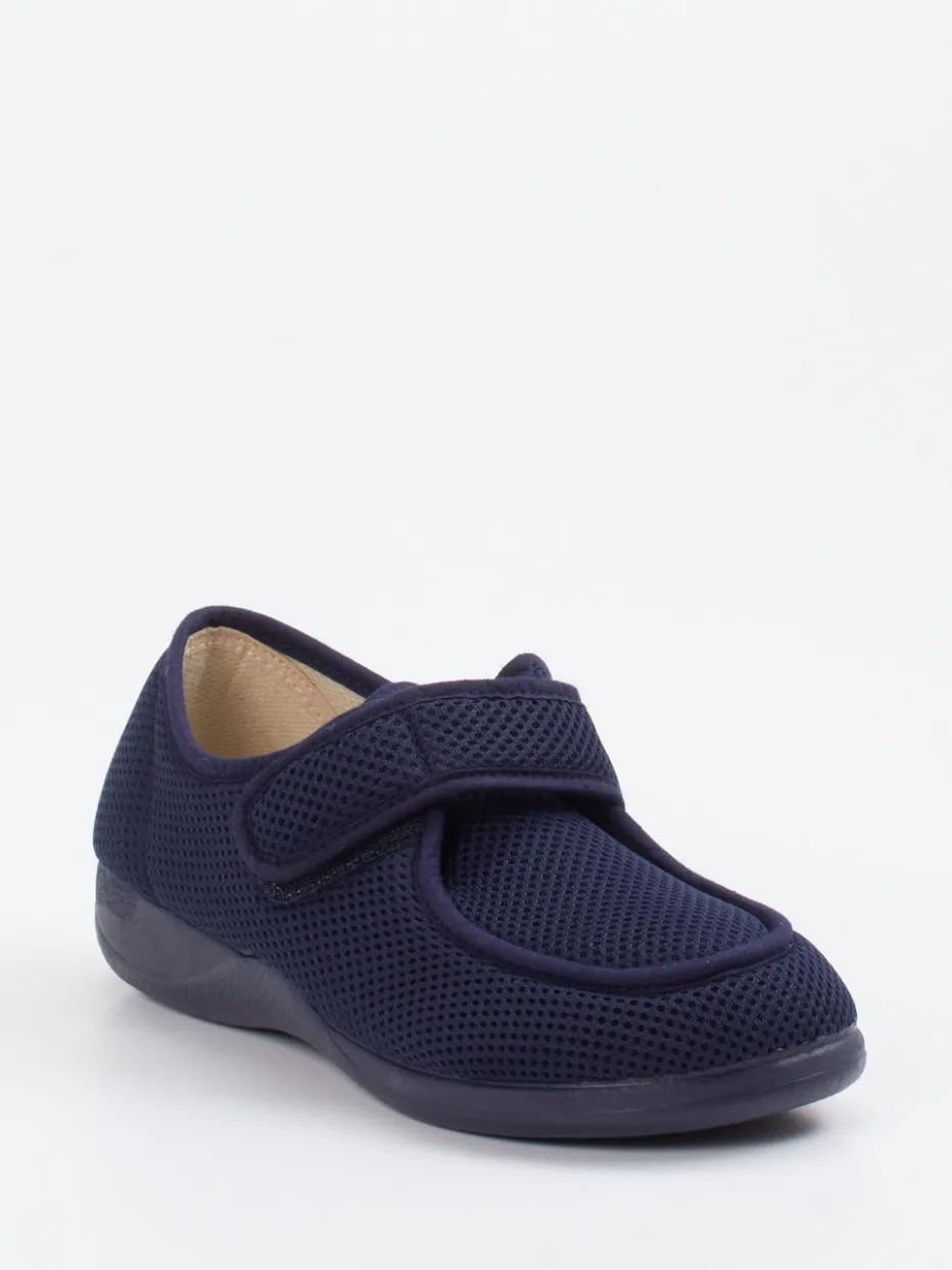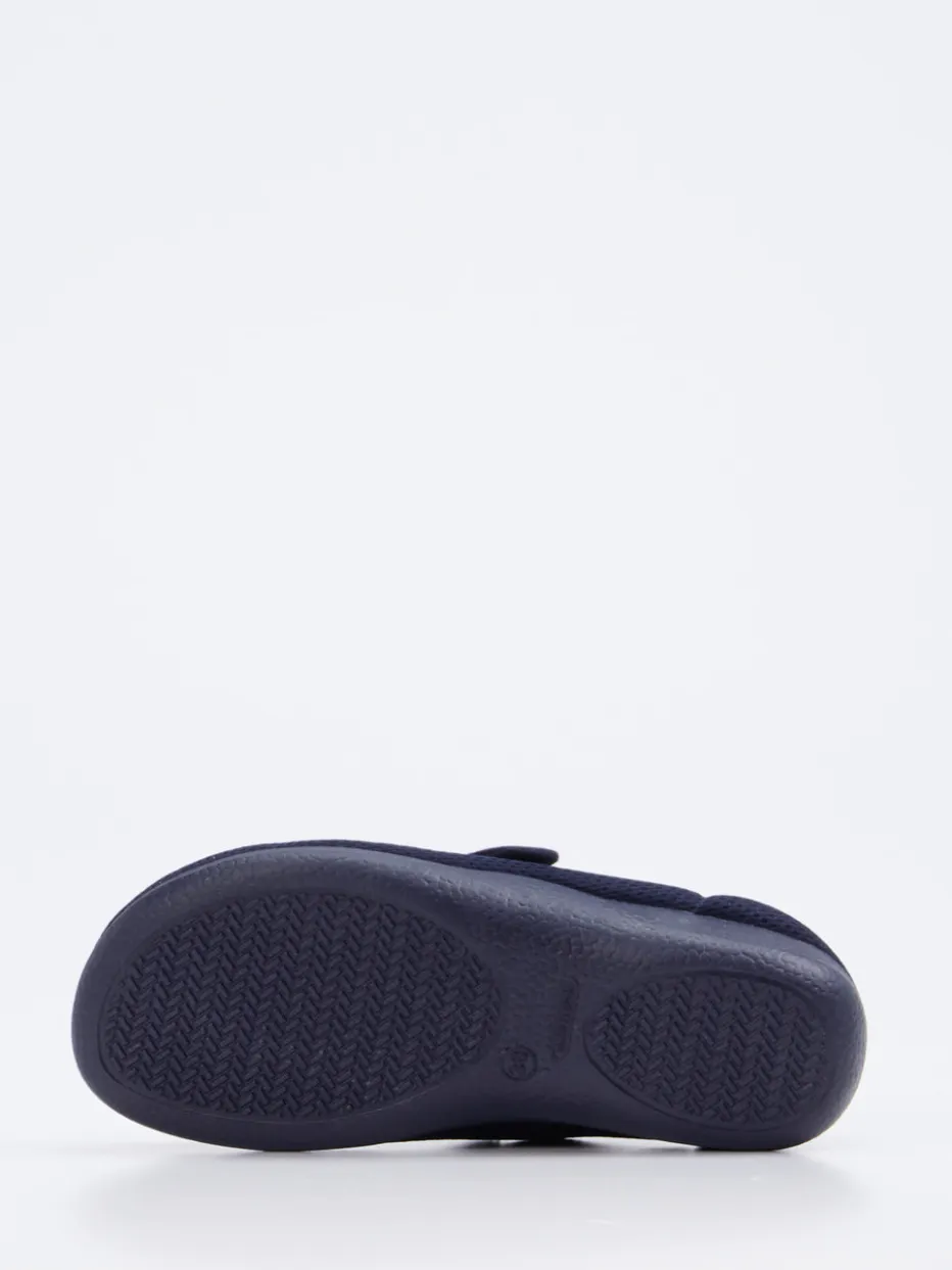 Komfort, der sich sehen lassen kann.Varomed präsentiert mit diesem Modell einen bequemen Hausschuh für Damen, der Wohlgefühl in den Fokus rückt. Ob im entspannten Tagesverlauf oder bei gesundheitlich sensiblen Füßen – das flexible Textil mit meshartiger Struktur und Ton-in-Ton-Nähten sorgt für angenehmes Fußklima. Die dunkelblaue Oberfläche wirkt dezent und modern, der gepolsterte Einstieg sowie die abgerundete Form bieten zusätzlich ergonomischen Halt. Dank praktischem Klettverschluss ist der Schuh individuell anpassbar. Die leichte Gummisohle mit feiner Profilierung bietet rutschhemmenden Stand bei gleichzeitiger Leichtigkeit. Stilistisch schließt der Schuh an barfuß-inspirierte Komforttrends an. Ein hausschuhgeeignetes Modell mit Varomed-Kompetenz für tragbare Entlastung im Alltag.