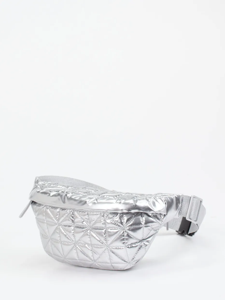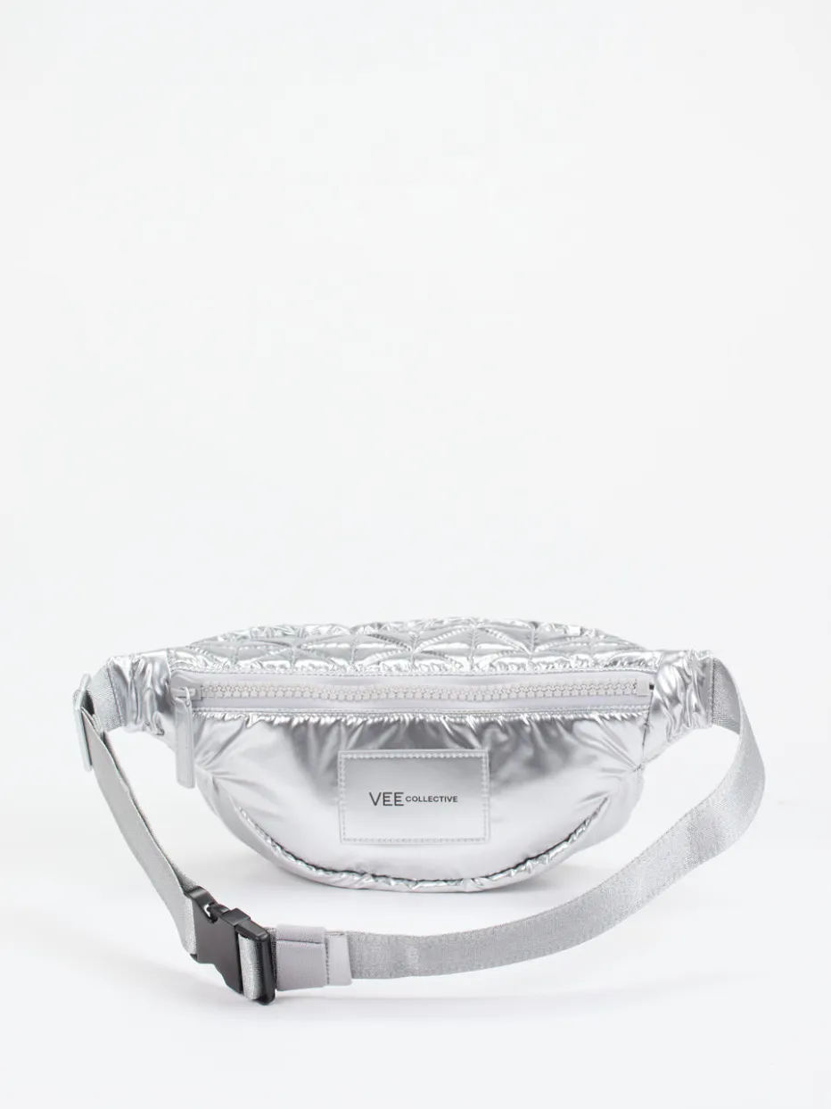 Ein modisches Accessoire ist diese Crossbody Bag der Marke VeeCollective Berlin. Das silberfarbene Ripstop-Nylon begeistert durch sein sportives Design sowie die softe Haptik. Das angesagte Steppmuster wird durch die tonigen Kunstlederelemente elegant betont. Der Innenraum bietet einen sicheren Platz für alle Habseligkeiten. Die Tasche ist sehr leicht und dank der zwei sportlichen Zipper wasserdicht verschließbar. Getreu seinem nachhaltigen Engagement verwendet VeeCollective nur zu 100% recyceltes Nylonmaterial. – Obermaterial: Ripstop Nylon – Futter: recyceltes Nylon – Farbe: silberfarben – Größe: ca. 18 x 35 x 9 cm (H x B x T) – Schulterriemen: max. ca. 83 cm, verstellbar – Verschluss: Reißverschluss – Innen: ein Hauptfach und ein Nebenfach mit zwei Steckfächern