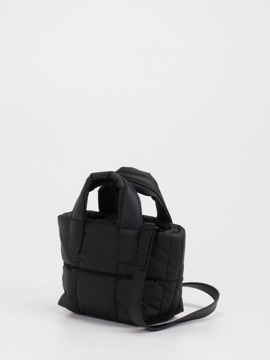 Leicht gepolstert. Maximales Stilgefühl. Vor allem aber: vegan. VeeCollective Berlin präsentiert mit dieser Mini Tote Bag eine ultra-leichte Damen-Handtasche für entspannte Alltagsmomente. Aus mattem, wasserabweisendem Nylon gefertigt, zeigt sie sich in klassischem Schwarz mit trapezförmiger Silhouette und tonaler Steppung. Zwei Trageoptionen – Tragehenkel oder verstellbarer Schulterriemen – sorgen für urbanen Komfort. Schwarze Hardware und dezente Logo-Prägung unterstreichen den minimalistischen Streetwear-Look. Die kompakte Form eignet sich ideal für City-Ausflüge oder Casual Styles. Besonders im Trend liegt sie durch Puffy-Bag-Ästhetik und Quiet-Luxury-Anmutung. Ein durchdachtes Design, das Leichtigkeit und Funktion mit markentypischer Stilreduktion vereint.