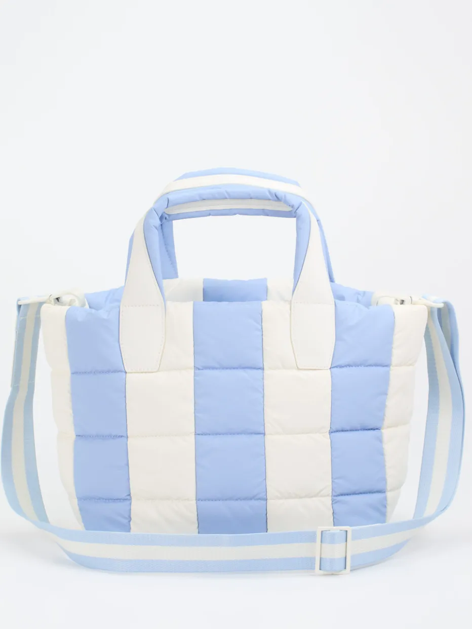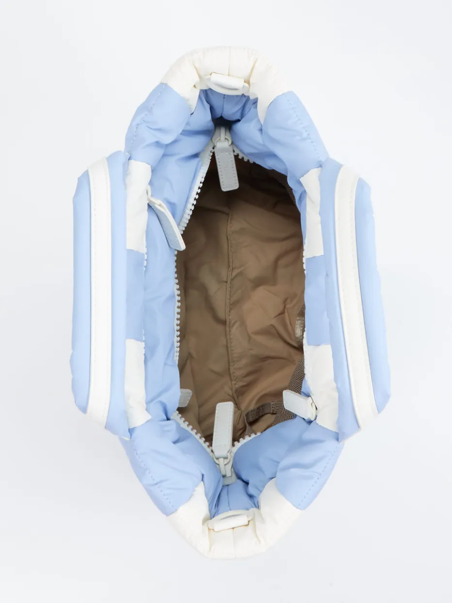 Die gesteppte Tasche aus recyceltem Nylon kombiniert minimalistische Formgebung mit funktionalen Details – ultraleicht, strukturiert und alltagstauglich. Perfekt für sommerliche Casual-Looks.