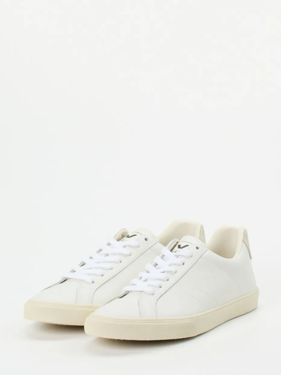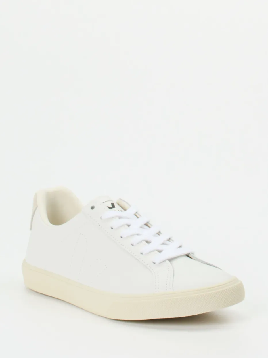 Schlichte Klarheit für urbane Looks.Die Sneaker-Kollektion des Labels VEJA bietet mit diesem Low-Top-Modell eine stilvolle Synthese aus Retro-Design und innovativer Nachhaltigkeit. Im Alltag sorgt das glatte, mattweiße Kalbleder für einen cleanen, edlen Look. Durch tonale Details wie die Logo-Prägung sowie ein markanter Wildleder-Fersenpatch mit grauem Branding entsteht ein dezenter Kontrast. Die cremefarbene, strukturierte Gummisohle unterstützt den klassischen Schnitt und verleiht der ästhetischen Silhouette Leichtigkeit. Innen überzeugt anschmiegsames Textilfutter. Modernen Minimalisten bietet der Sneaker vielseitige Kombinationsmöglichkeiten – von Naturtönen bis Monochromoutfit. Ein wandelbarer Urban Basic mit bewusster Haltung – Design und Verantwortung vereint.