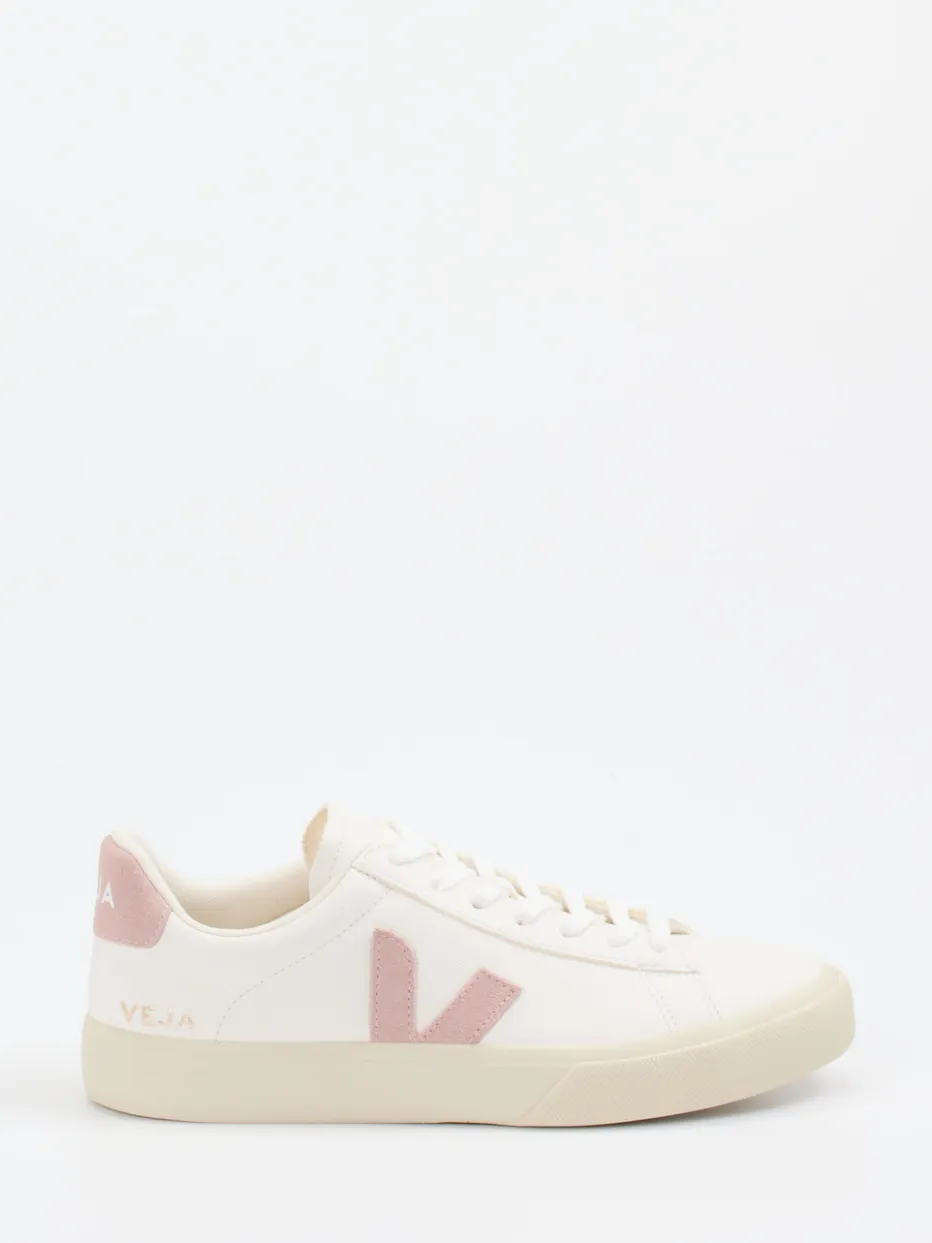 Dieser minimalistische Sneaker von VEJA kombiniert nachhaltige Materialien mit einer ruhigen Farbpalette und setzt subtile Designakzente in Altrosa.