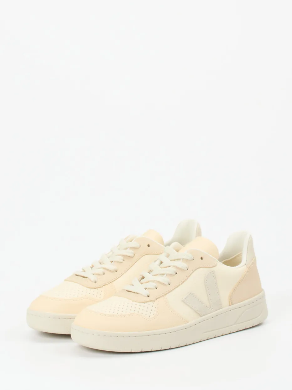 Zeitloser Look trifft modernes Statement.VEJA präsentiert mit diesem Low-Top-Sneaker ein klares Highlight für Fans nachhaltiger Streetwear. Im urbanen Alltag überzeugt das Modell durch seine materielle Hochwertigkeit: Glattes Leder mit mattem Finish wird durch eine perforierte Zehenpartie und ein tonales V-Logo modern akzentuiert. Die cremebeigen Nuancen unterstreichen die minimalistische Linienführung und sorgen für vielseitige Kombinierbarkeit. Eine griffige Gummisohle und das atmungsaktive Textilfutter bieten Komfort für jeden Tag. Stilistisch verortet zwischen Retro Court-Vibes und „Quiet Luxury“-Elementen, ist dieser Unisex-Sneaker ein Must-have für bewusste Ästheten. Nachhaltigkeit und dezentes Design verbinden sich hier zu markentypischer Alltagstauglichkeit.