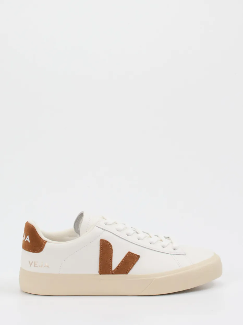 Cleanes Design trifft Retro-Charakter.Veja beweist als stilprägende Marke mit diesem Unisex-Sneaker, wie cool Nachhaltigkeit aussehen kann. Ideal für legere City-Looks oder entspannte Momente zu Hause: Der Low-Top-Sneaker kombiniert chromfrei gegerbtes Kalbleder mit cognacfarbenen Veloursleder-Applikationen und softem Textilfutter. Die tonale Off-White-Farbgestaltung mit tonigen Nähten und Retro-inspirierte, flache Silhouette unterstreichen die minimalistische Linie. Eine flexible Gummisohle und das herausnehmbare Fußbett sorgen für angenehmen Komfort. Nachhaltige Materialien wie Naturkautschuk aus dem Amazonas runden das Konzept ab. Lässt sich souverän zu Denim, Stoffhose oder Culotte stylen. Zeitloses Design mit verantwortungsbewusster Marken-DNA von Veja.