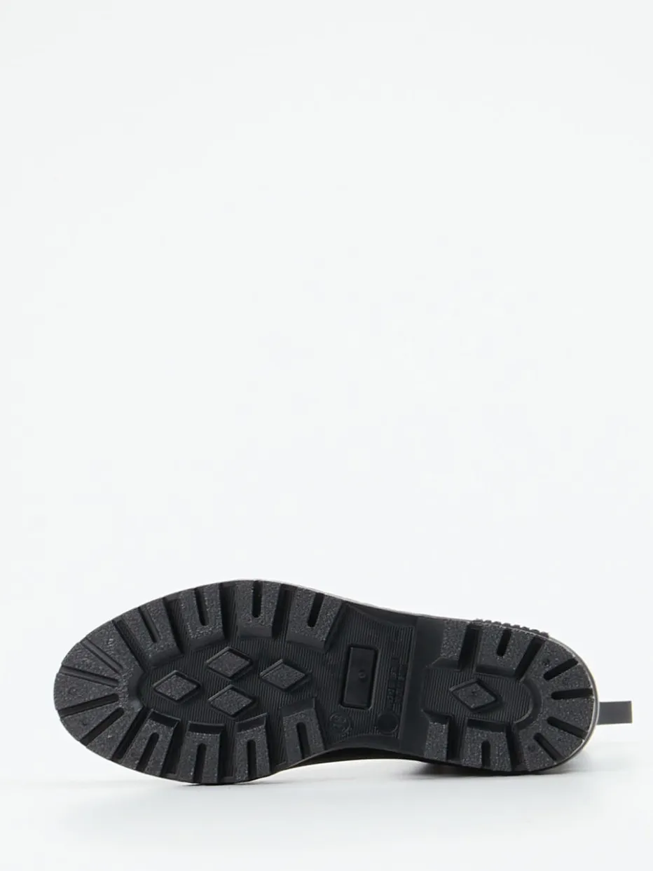 Verbenas präsentiert wetterfeste Chelsea Boots für Damen, gefertigt aus schwarzem Gummi mit elastischem Leo-Einsatz.