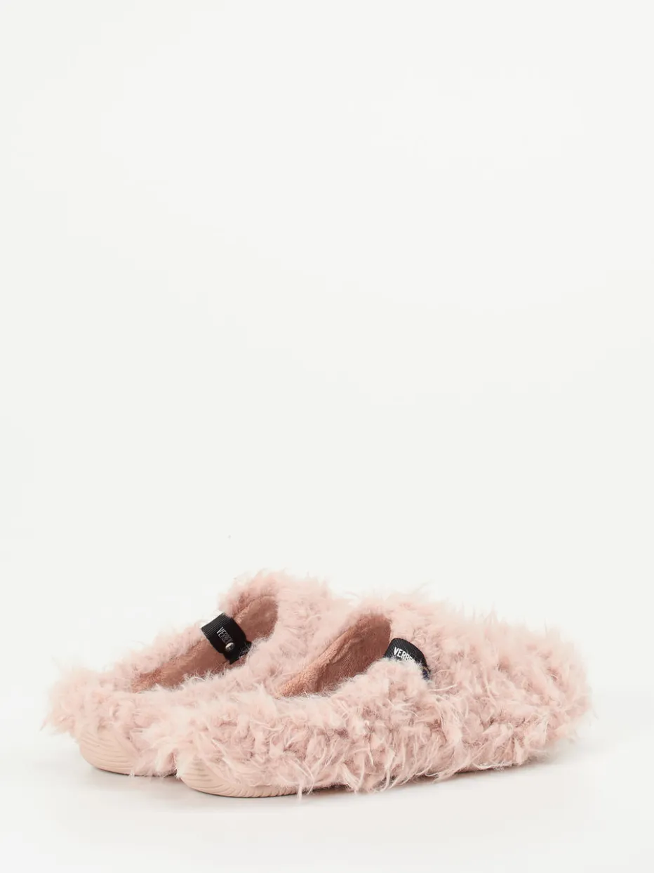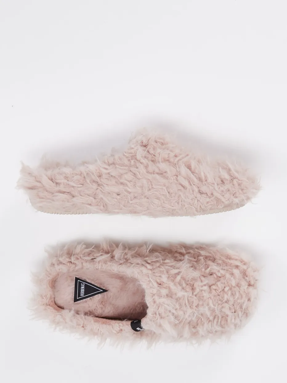 Ob beim Lesen, Serienmarathon oder Frühstück am Wochenende – das rosa Modell mit hochwertigem Textilmaterial begeistert durch sein besonders weiches Kunstfellfutter und die bequeme Schlupfform. Die geschlossene, rund geformte Silhouette und das strukturierte Fußbett sorgen für Stabilität und angenehmen Halt. Der auffällige Labelpatch auf dem Spann sowie die strukturierte Gummisohle geben dem Look eine trendige Note, inspiriert vom Loungewear-Stil der aktuellen Saison. Kombiniert mit Jogginghose oder Wollstrick perfekt inszenierbar.