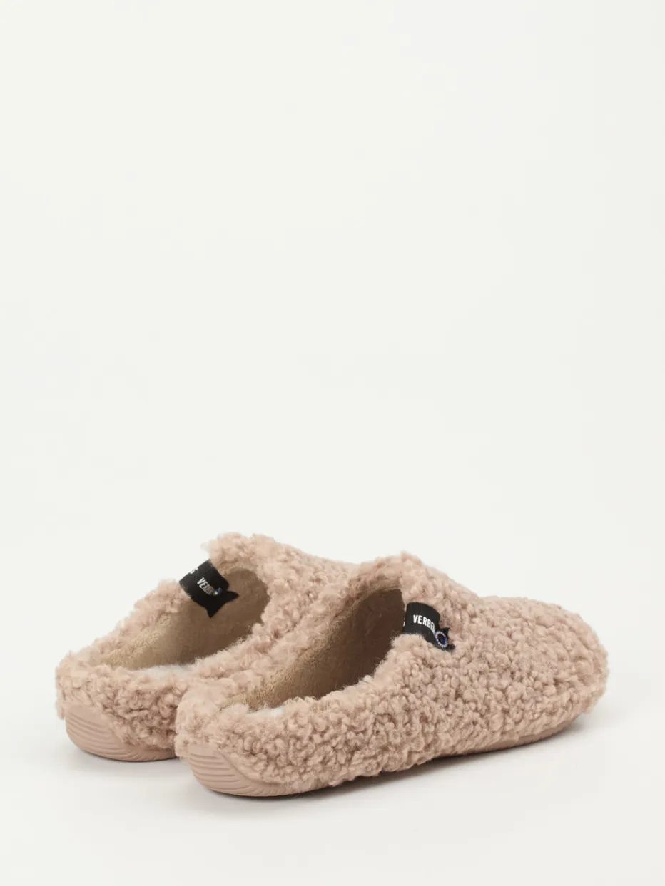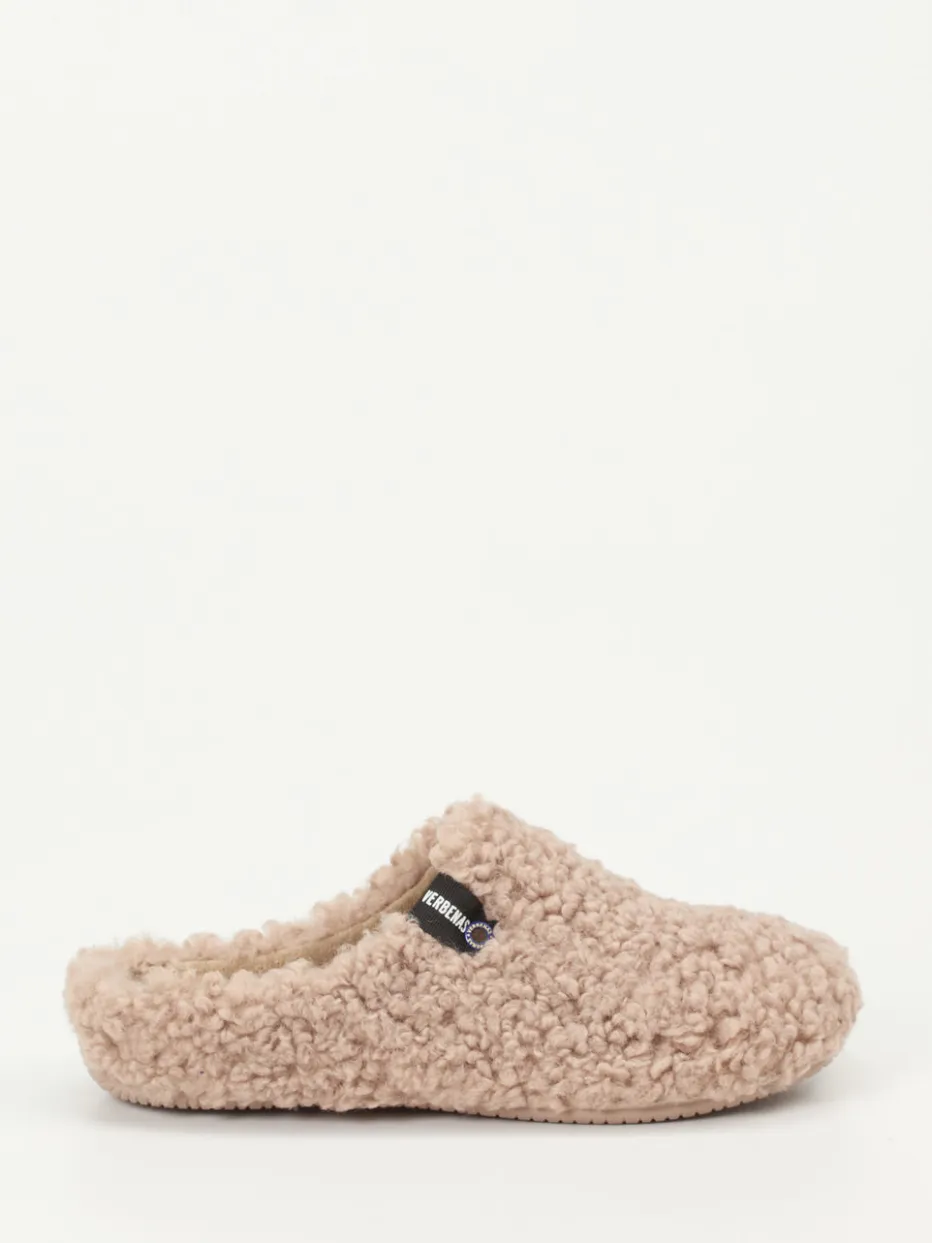 Gemütlichkeit trifft minimalistisches Design.Verbenas präsentiert flauschige Pantoffeln als stilvolle Ergänzung moderner Homewear. Ideal für entspannte Stunden auf Couch oder Boden sorgen diese geschlossenen Hausschuhe in warmer Beigebraun-Nuance für maximalen Komfort. Das seidenweiche Textilfell mit floriger Struktur umhüllt den Fuß – ergänzt durch ein gleichsam weiches Innenfutter. Der Schlupfeinstieg mit offener Ferse und die strukturierte, rutschhemmende Gummisohle entsprechen einem alltäglich-praktischen Anspruch. Label-Applikation und die gerundete Clog-Form unterstreichen die zurückhaltende Ästhetik. Verbenas verbindet weiches Hausschuhgefühl mit ruhiger Formensprache für entspannte Stilbewusste.