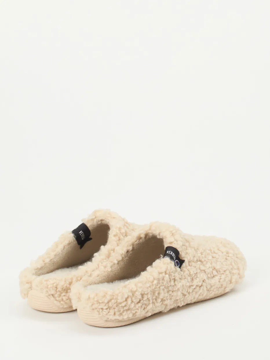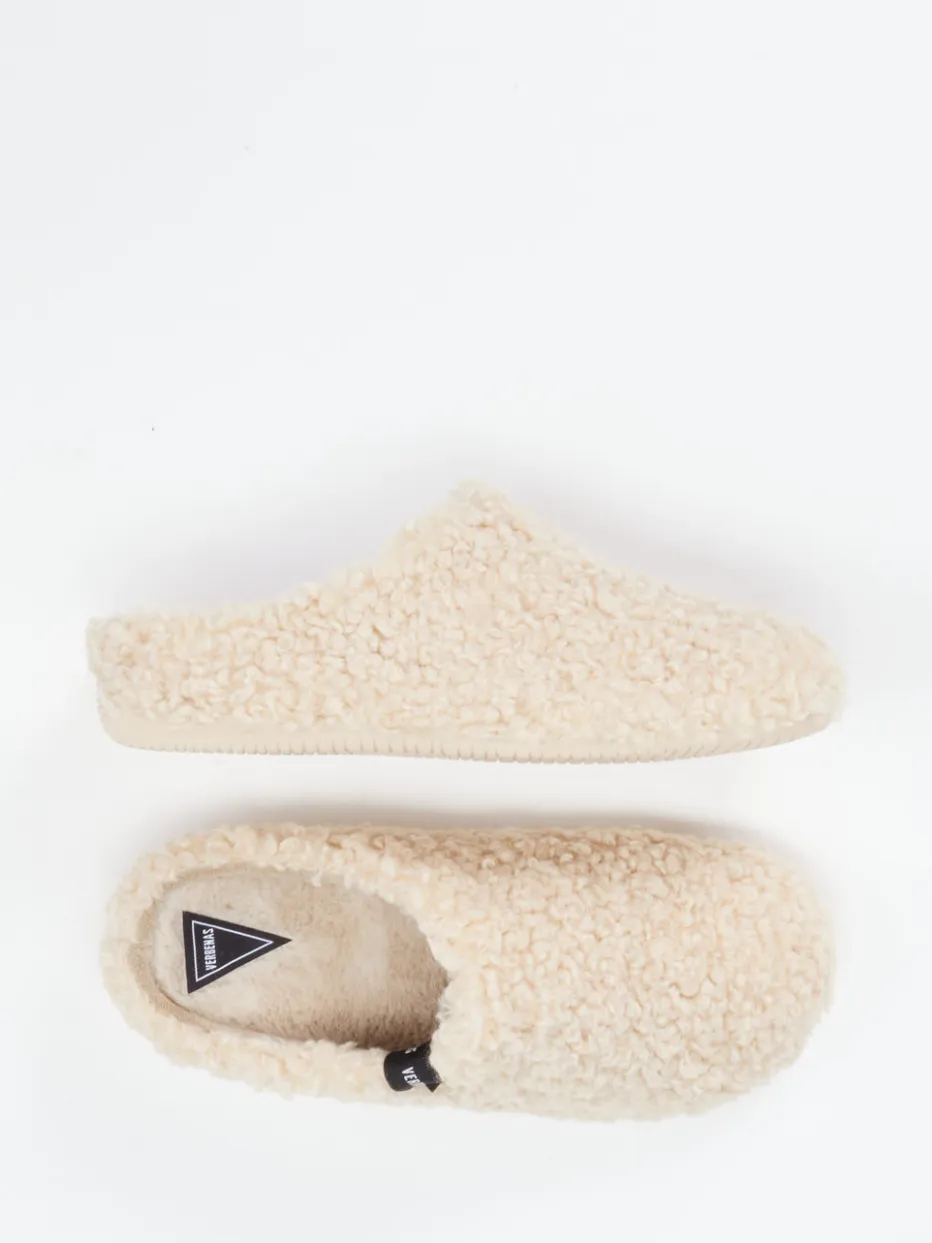 Weichheit trifft Funktionalität.Verbenas präsentiert mit diesen Pantoffeln ein wärmendes Loungewear-Essential. Ob beim Lesen auf dem Sofa oder auf dem Weg in die Küche – das flauschige, seidig weiche Textilfell in sanftem Cremebeige sorgt für spürbare Gemütlichkeit. Die geschlossene Vorderpartie in Mule-Form wird durch eine offene Ferse ergänzt, während das schaumgepolsterte Innenfutter zusätzlichen Komfort bietet. Ein seitliches Markenlabel verleiht dem Design dezente Wertigkeit. Die strukturierte Gummisohle sorgt für trittsicheren Halt auf glatten Böden. Gemacht für stilvollen Winterkomfort zu Hause – mit der Qualität, die Verbenas auszeichnet.