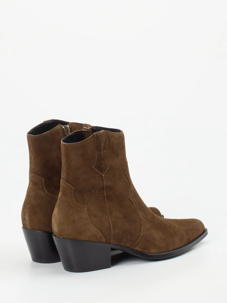 Der Western-Trend neu interpretiert: Diese Stiefelette vereint hochwertiges Veloursleder mit minimalistischer Silhouette und stilvoller Farbgebung.