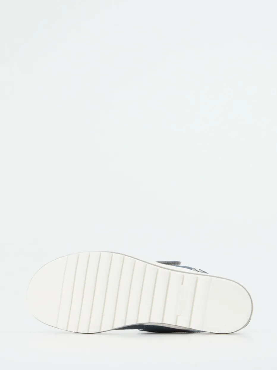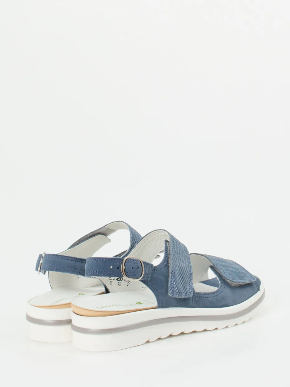 Diese Sandale verbindet ergonomisches Design mit hochwertigem Nubukleder in jeansblauer Optik – ideal für warme Tage und entspannte Freizeitmomente.