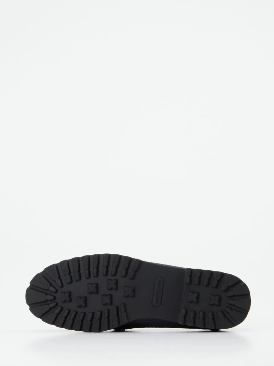 Komfort trifft Stilmodernität.Die Marke Waldläufer präsentiert einen zeitlosen Damen-Loafer aus der Komfortlinie. Ob Büroalltag oder stilvoller Freizeit-Look – dieser Trotteur überzeugt durch weiches, genarbtes Elchleder in klassischem Schwarz. Die schlanke, niedrig geschnittene Silhouette wird durch Ton-in-Ton-Nähte und eine zweifarbige Profilsohle modern aufgegriffen. Seitliche Elasteinsätze erleichtern das Anziehen, das anatomische Wechselfußbett unterstützt ganztägigen Tragekomfort. Dank rutschhemmendem Laufprofil und Utility-Chic-Anleihen ist der Schuh ein dezenter Trendbegleiter für Office und City Looks. Ideal kombinierbar mit dunkler Stoffhose oder Lederaccessoires. Waldläufer steht für durchdachten Komfort mit feinsinnigem Designanspruch.