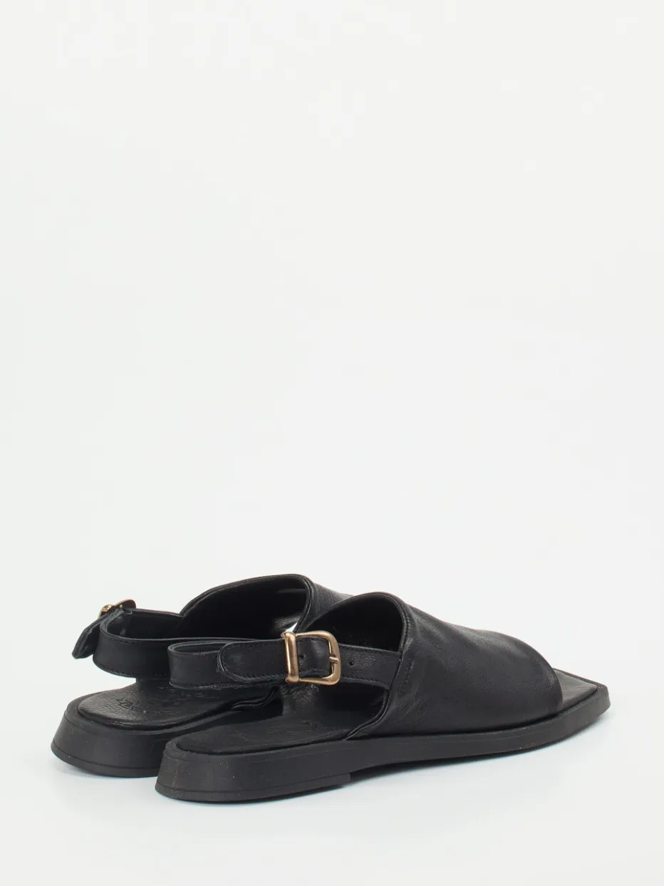 Die Marke Werner präsentiert eine elegante Slingback-Sandale für Damen, gefertigt aus fein genarbtem Kalbleder in klassischem Schwarz.