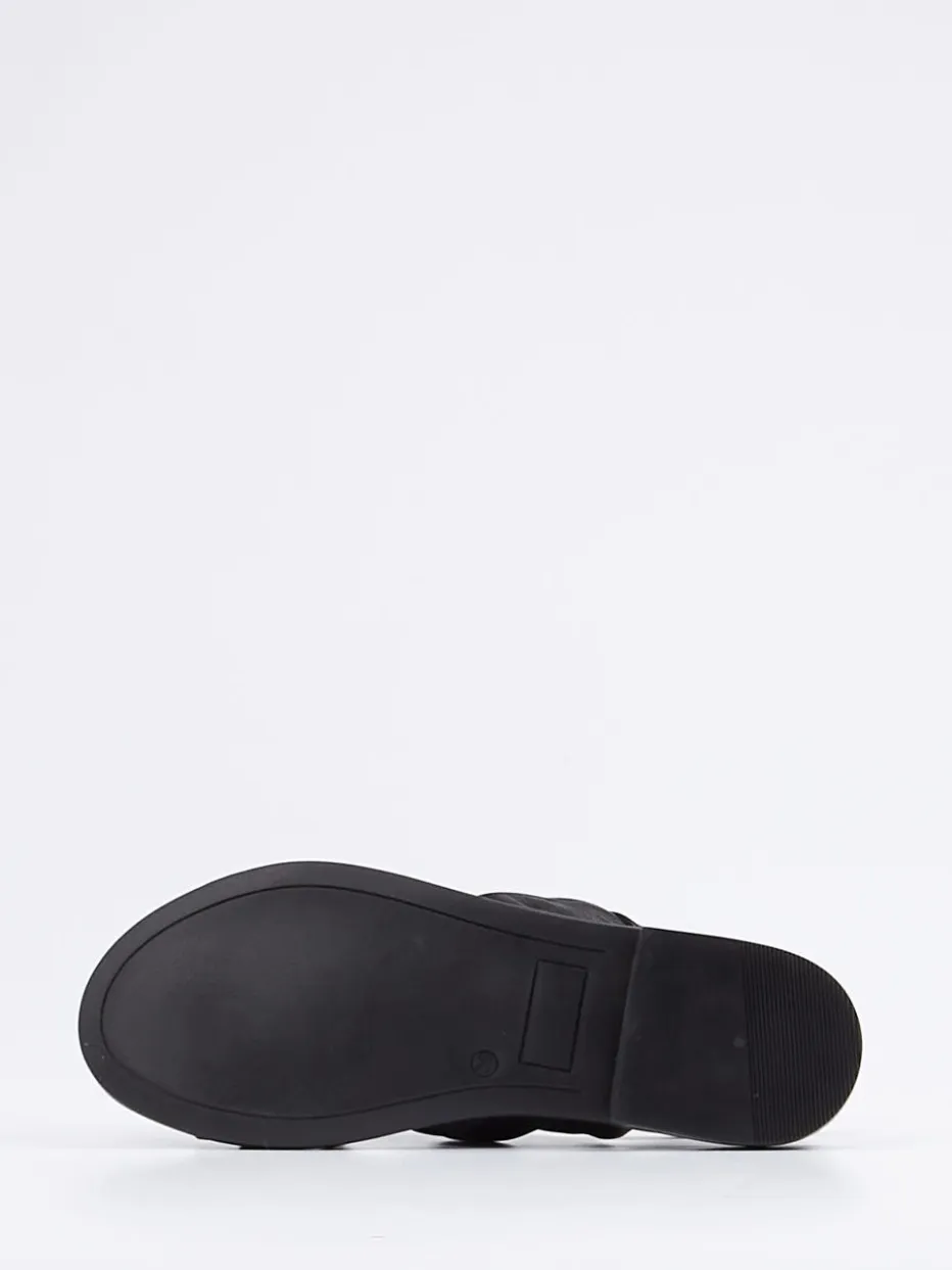 Schwarzer Sommerklassiker mit Knotendetail.Werner bietet mit dieser Damen-Slingback-Sandale ein modisches Sommermodell im minimalistischen Stil. Ideal für entspannte Stadtbummel oder Urlaubstage, überzeugt das Modell durch pflanzlich gegerbtes Bio-Kalbleder mit matt-schwarzer Oberfläche und butterweicher Haptik. Die geknoteten Riemen sorgen für visuelles Interesse, während der verstellbare Fersenriemen mit goldfarbener Dornschließe Halt garantiert. Ein gepolstertes Fußbett und die flache Gummisohle unterstreichen den Tragekomfort. Die ruhige Farbgebung unterstützt das „Quiet Luxury“-Feeling der aktuellen Saison. Ein hochwertiger Komfortschuh mit stilsicherem Understatement von Werner.