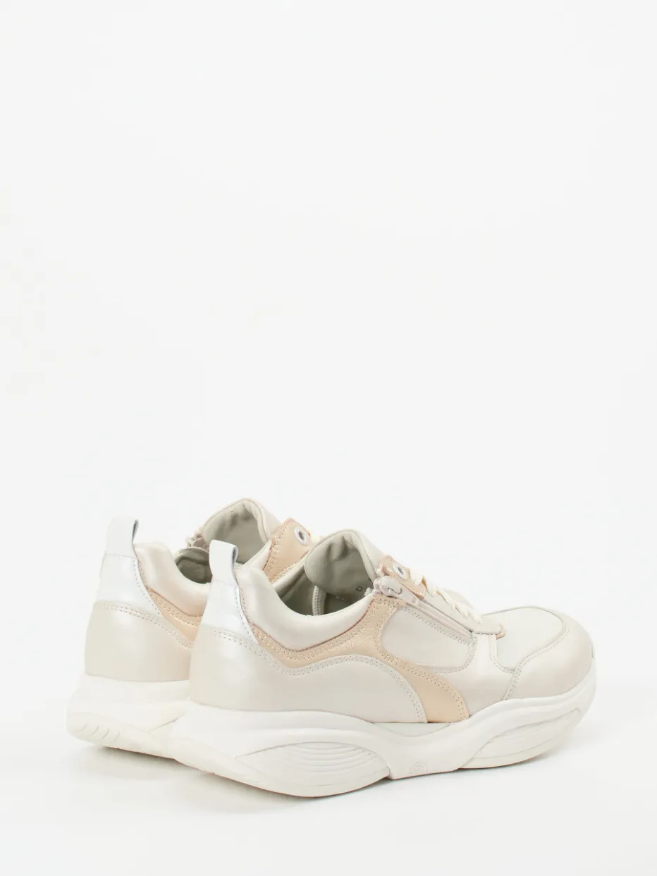 Stilvolles Understatement trifft Komfort-Power.Xsensible präsentiert einen beigen Komfort-Sneaker für Damen, der weich gepolstert und modern inszeniert ist. Ideal für lange Tage auf den Beinen sorgt der Stretchwalker mit seiner gepolsterten Gummisohle und austauschbarem Fußbett für spürbare Entlastung. Das beige Kalbleder wird von leicht glänzenden Metallic-Akzenten begleitet, während eine chunky Silhouette und tonige Textildetails den Look prägen. Der seitliche Reißverschluss vereinfacht das Anziehen, kombiniert mit einer klassischen Schnürung. Inspiriert vom Soft-Neutrals-Trend SS24 passt dieser Sneaker zu sportlich-eleganten Alltagsoutfits – etwa in Kombination mit pastellfarbenen Jogpants. Ein durchdachter Komfortschuh mit modischer Leichtigkeit, typisch Xsensible.