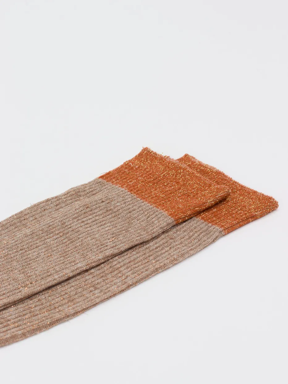 Diese weich gestrickten Damensocken von Alto Milano kombinieren klassischen Komfort mit subtil schimmernden Akzenten in Kupferorange und bieten ein kleines Stilstatement für entspannte Momente.