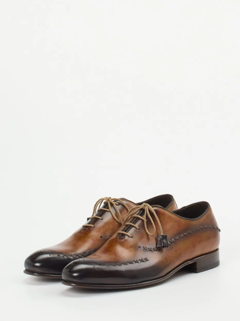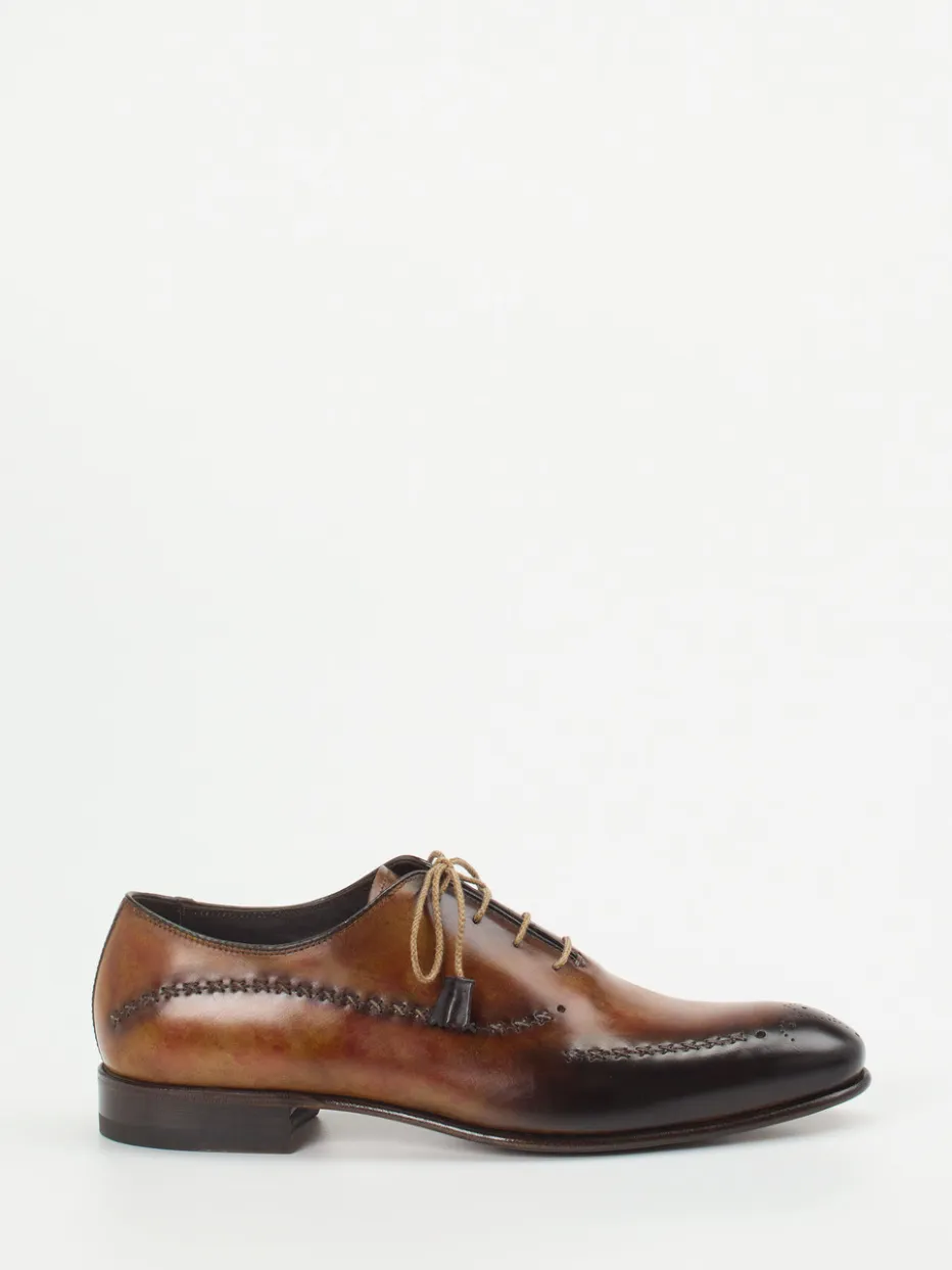 Dieser edle Derby-Schuh zeichnet sich durch handveredeltes Kalbleder, detailreiche Ziernähte und eine schlanke Silhouette aus – ein Statement für traditionelle Eleganz mit modernem Anspruch.