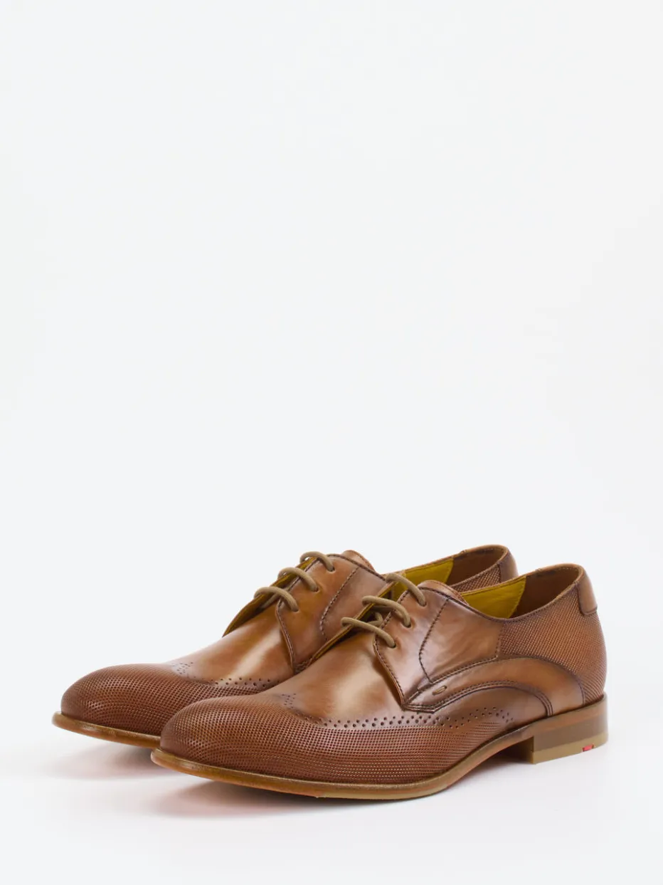 Kalbleder in fein genarbter Ausführung und dezente Brogue-Details verleihen diesem Derby von Lloyd zeitlose Eleganz mit Understatement.