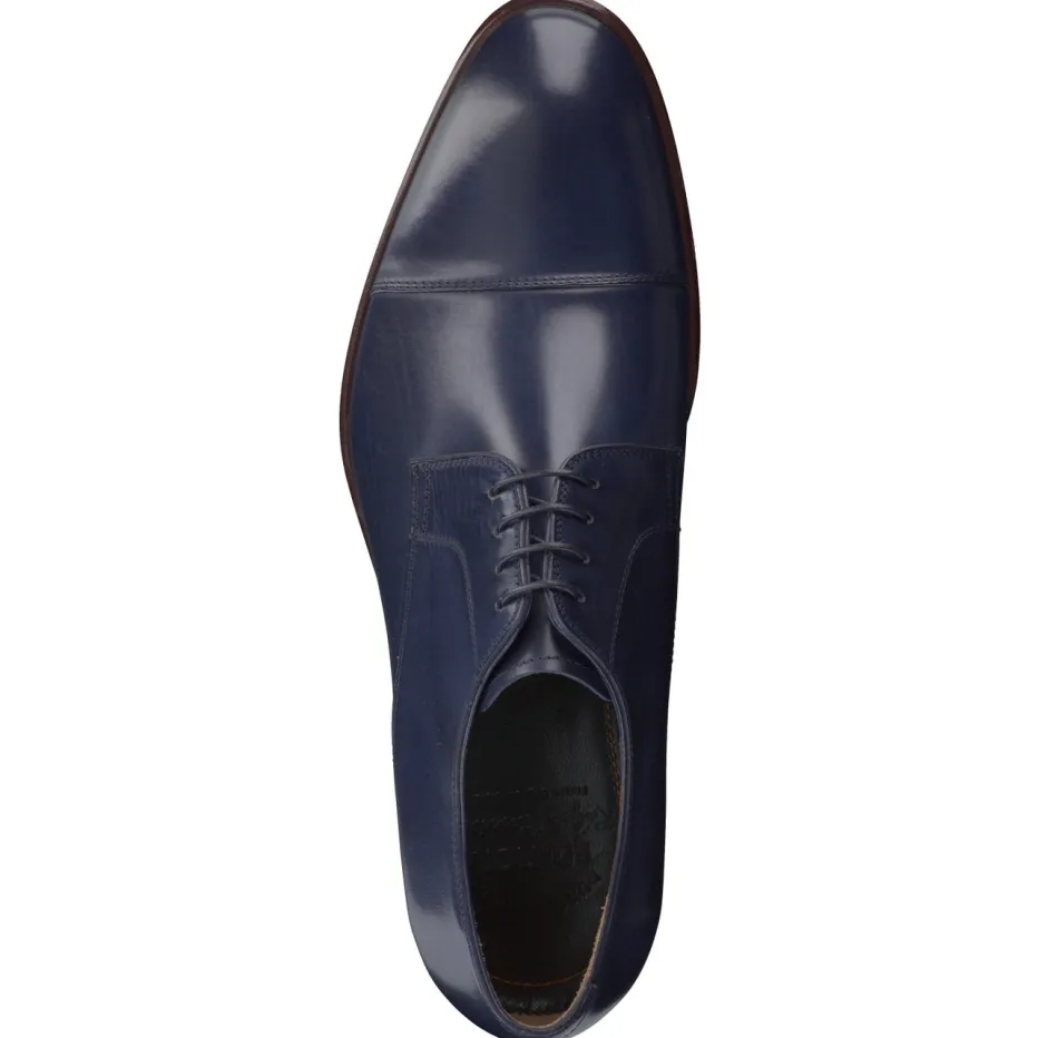 Klassisch-schlank und hochwertig verarbeitet überzeugt dieser Derby durch feines Kalbleder in Nachtblau sowie durchdachte Funktionalität für anspruchsvolle Büro- und Eventlooks.