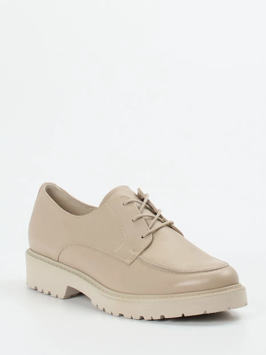 Stilsicher durch den Büroalltag.Dieser Damen-Halbschuh von Semler überzeugt als moderner Derby-Schnürer mit feinem Kalbleder. Im beigefarbenen Ton mit matter Oberfläche wirkt das Modell besonders elegant und passt zu unterschiedlichsten Business-Looks. Die klare Silhouette mit flachem Blockabsatz, Ton-in-Ton-Nähten und profilierter Sohle steht ganz im Zeichen von „Quiet Luxury“ und ist zugleich komfortorientiert. Durch das weich gepolsterte Wechselfußbett ist zusätzlicher Laufkomfort gewährleistet. Die klassische Schnürung sorgt für flexible Anpassung, während das Leder-/Textilfutter ein angenehmes Tragegefühl bietet. Ein stilvoller Begleiter mit modernem Purismus – typisch Semler.