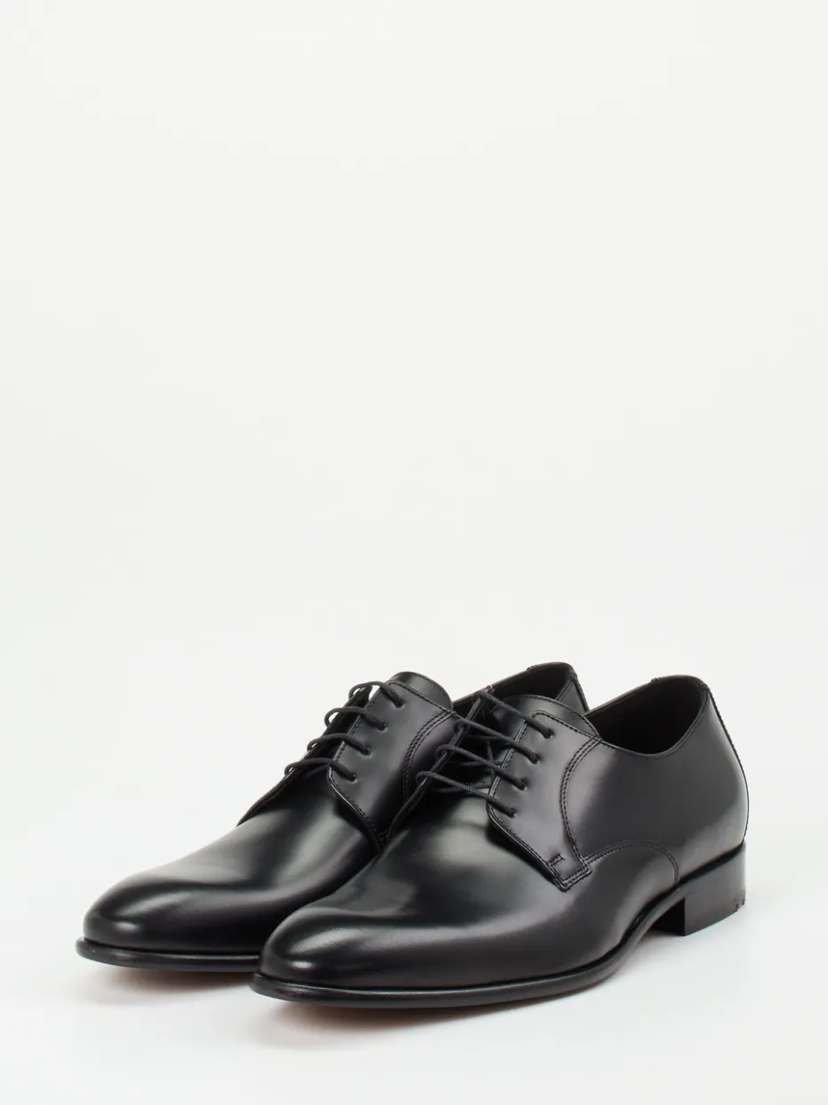 Dieser klassische Derby von Lloyd überzeugt mit schwarzem Hochglanzleder, dezenten Nahtdetails und einer edlen Ledersohle mit rotem Akzent – formvollendet für Business und festliche Auftritte.