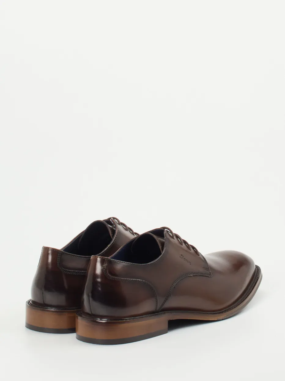 Stilvoller Begleiter für formelle Auftritte.Sioux präsentiert einen klassischen Herren-Derby aus hochwertigem, glänzendem Kalbleder. Der dunkelbraune Schuh passt perfekt zu Business-Outfits und formellen Anlässen. Die klassische, leicht spitz zulaufende Silhouette wird durch eine 5-Loch-Schnürung, Ton-in-Ton-Nähte sowie dezentes Branding unterstrichen. Eine teil-gummierte Ledersohle mit Holzabsatz sorgt für stilvollen Auftritt und lange Haltbarkeit. Der Innenraum ist vollständig mit Leder ausgekleidet und bietet dank weichem Fußbett angenehmen Tragekomfort – auch im täglichen Einsatz. Kombiniert hervorragend zu grauen Anzughosen oder navyfarbenen Chinos. Zeitlose Eleganz mit der Verlässlichkeit deutscher Handwerkskunst.