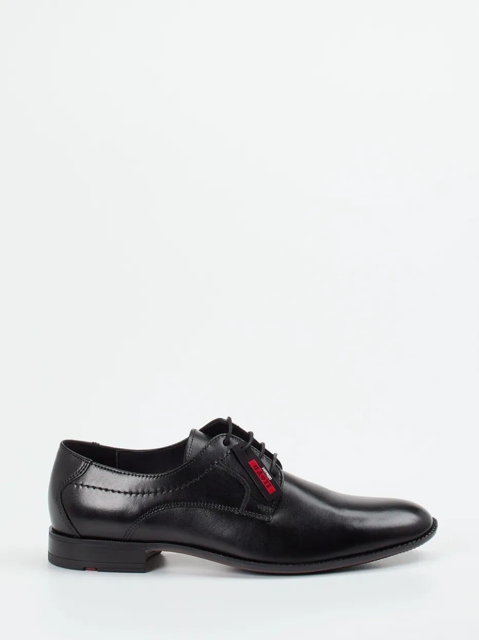 Klassik und Moderne vereinen sich in diesem Derby-Schnürschuh von Lloyd aus schwarzem Kalbleder mit edlem Glanz und subtilen Designakzenten. Ideal für gehobene Business-Outfits.