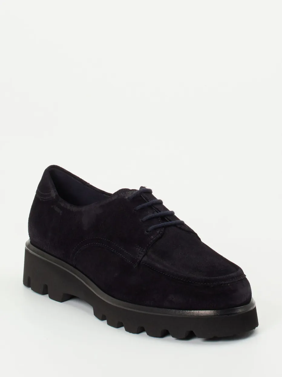 Ob zum Stadtbummel oder Business-Lunch – das hochwertige Veloursleder mit gewachster, samtiger Oberfläche schützt zuverlässig vor Wind und Nässe. In tiefdunklem Blau gehalten und mit minimalistischer Mokassinnaht sowie toniger Vierloch-Schnürung versehen, setzen die Schuhe auf dezente Eleganz. Die profilierte Gummisohle in Schwarz unterstreicht den Chunky-Look und liefert sicheren Halt, selbst auf rutschigem Untergrund. Innen sorgt ein Leder-/Textilfutter mit weich gepolstertem Wechselfußbett für spürbaren Komfort. Ideal für Fans von Quiet Luxury und funktionaler Ästhetik.