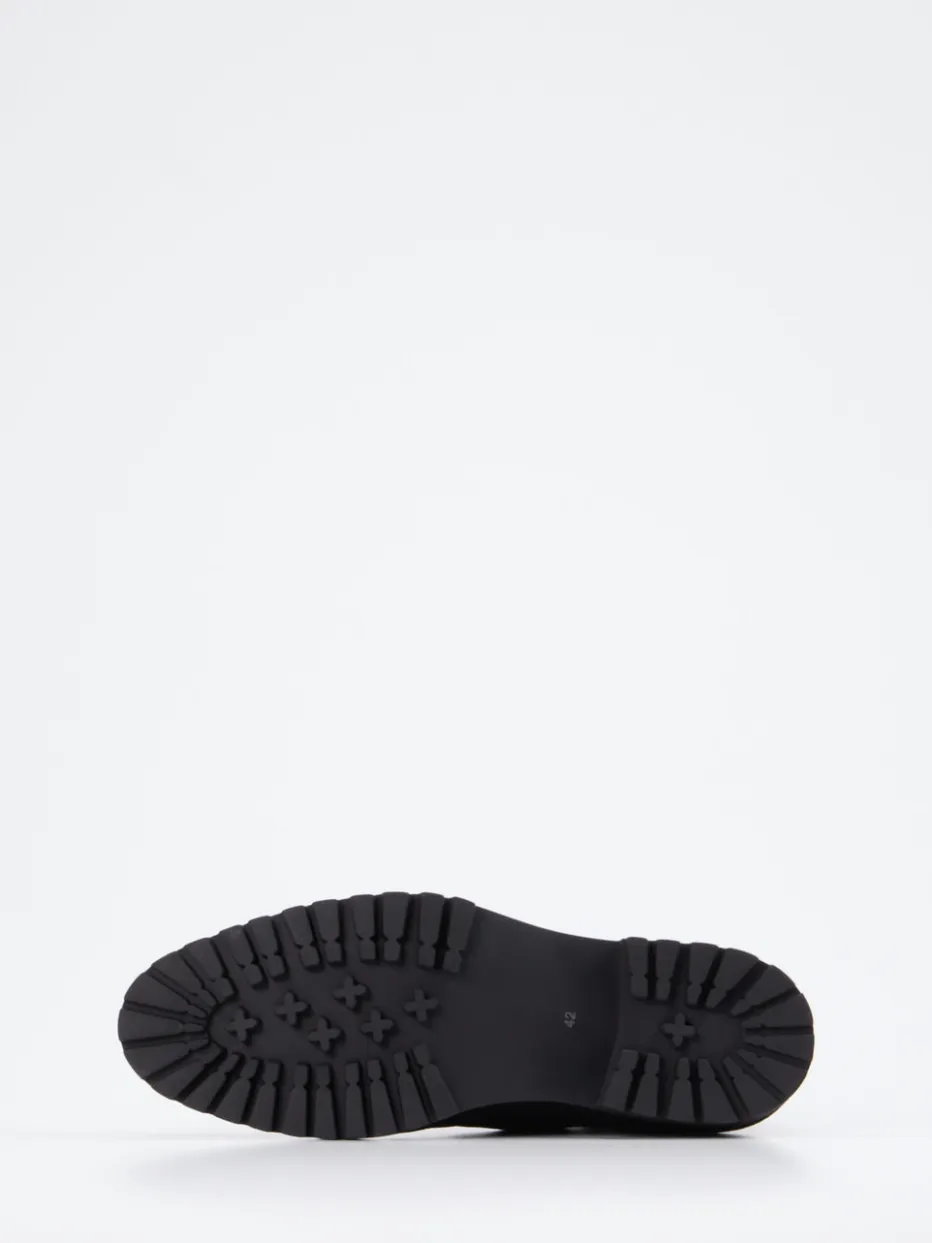 Urbaner Komfort trifft klassische Linien.Konstantin Starke bringt mit diesen Herrenboots eine elegante Variante des Desert Boots auf den Asphalt. Ideal für all jene, die zwischen Business und Freizeit Wert auf einen gepflegten Auftritt legen: Das tiefschwarze Veloursleder ist samtig angeschliffen und wird durch tonale Nähte sowie eine klassische Zweiloch-Schnürung ergänzt. Das weiche Kalblederfutter sorgt für ein komfortables Tragegefühl, während die profilierte Gummisohle Trittsicherheit auf verschiedensten Untergründen bietet. Optisch reduziert und von urbaner Klarheit geprägt, fügt sich der Look in den Stilkanon aktueller Quiet-Luxury-Trends ein. Besonders harmonisch in Kombination mit Chinohose und Kaschmirstrick. Konstantin Starke steht hier für kompromisslose Materialqualität und souveräne Formensprache.