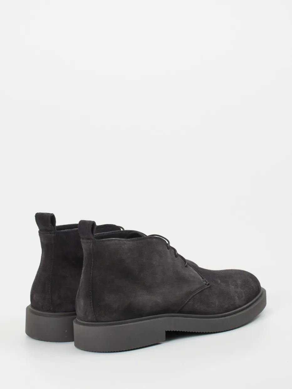 Ob für den Büroalltag oder den stilvollen Auftritt in der Freizeit – die Boots aus echtem Veloursleder in dunklem Anthrazit überzeugen mit matter Oberfläche, tonalen Nähten und schmaler Silhouette. Die knöchelhohe Form mit dezenter Dreiloch-Schnürung und hinterer Zuglasche zeigt klare Linien. Eine flexible Gummisohle rundet das Modell funktional ab. Zeitgemäße Stilrichtungen wie „Quiet Luxury“ und „Soft Utility“ spiegeln sich im Look wider. Perfekt kombinierbar mit schmaler Stoffhose und Kaschmirpullover.