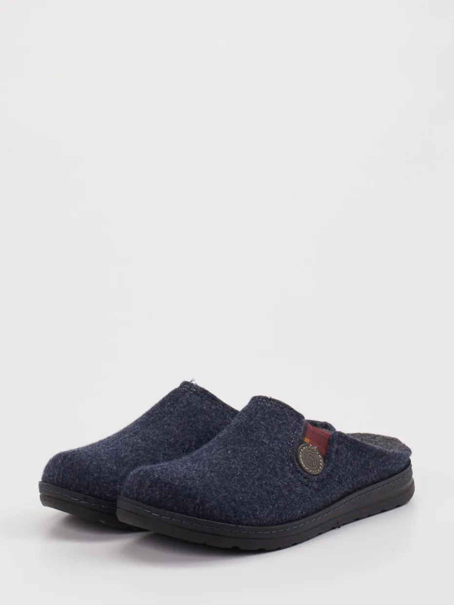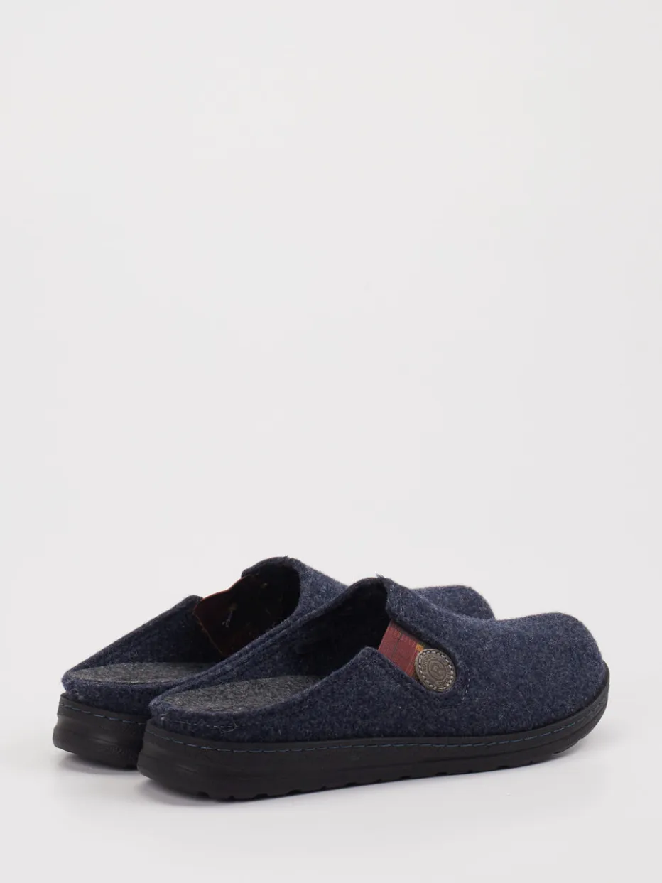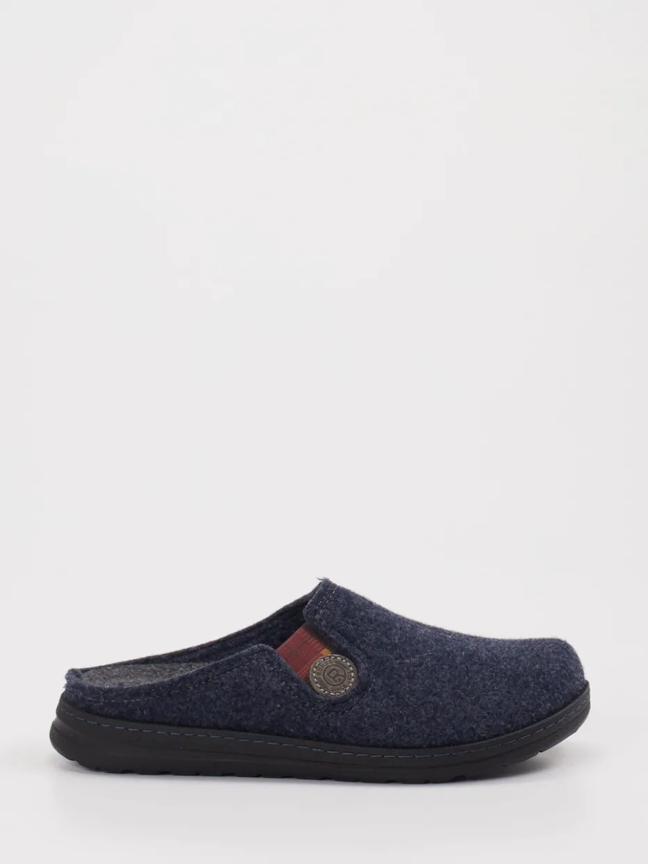 Wohliger Komfort für Zuhause. Die Marke Rohde präsentiert mit diesen Pantoffeln ein durchdachtes Hausschuhmodell für Alltag und Entspannungszeit. Das weiche Filzmaterial mit melierter Oberfläche liegt angenehm am Fuß und sorgt in Kombination mit der rutschhemmenden Gummisohle für Sicherheit auf glatten Böden. Der dunkelblaue Farbton harmoniert mit einem karomusternen Elastikband in Dunkelrot und Schwarz, das nicht nur optisch auffällt, sondern auch für einen komfortablen Sitz sorgt. Die offene Fersenform erleichtert das Hineinschlüpfen, ein geprägter Knopf mit Logo unterstreicht das Design. Passend zur Loungewear und ideal für den skandinavisch inspirierten Slow-Living-Lifestyle. Verlässliche Wärme und praktischer Komfort – angelehnt an Rohdes Designtradition.