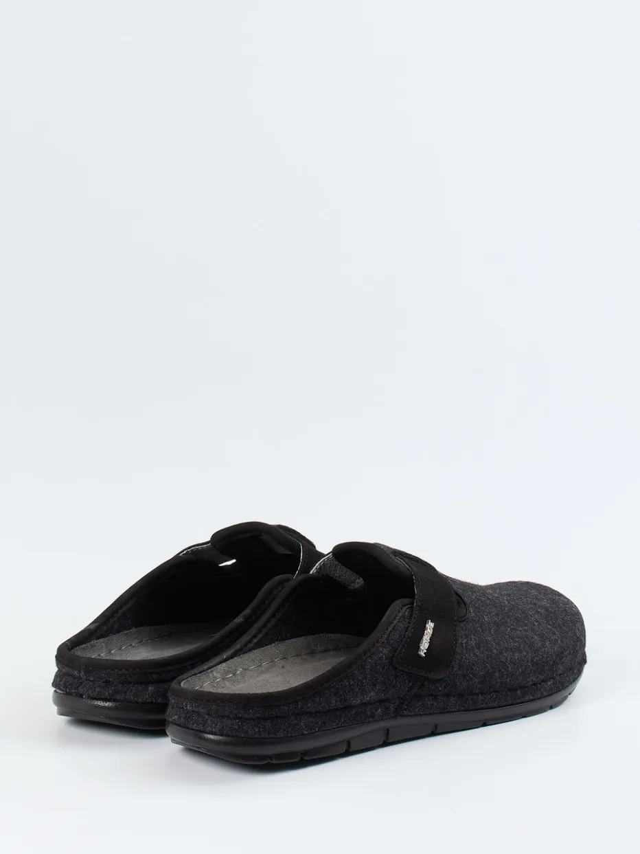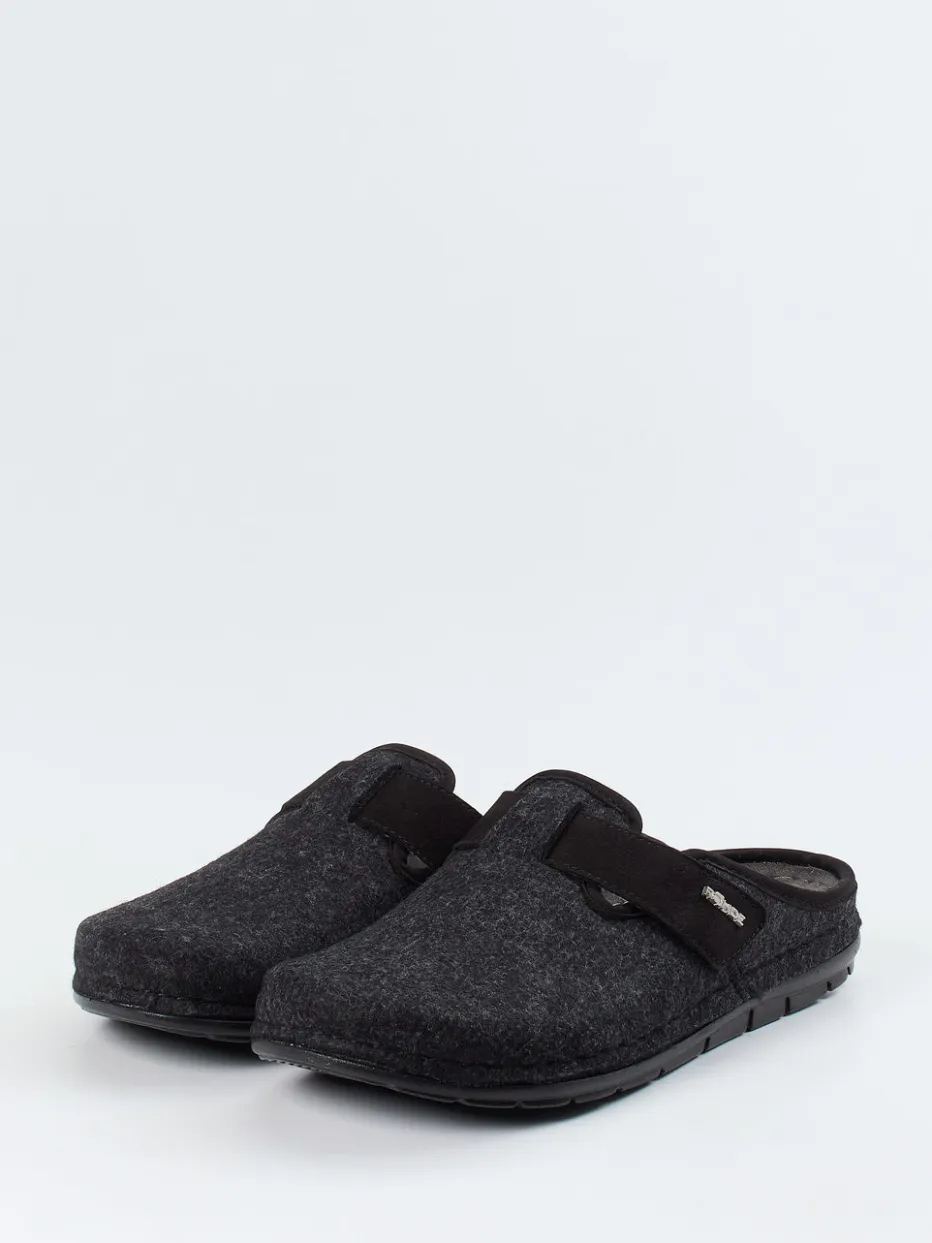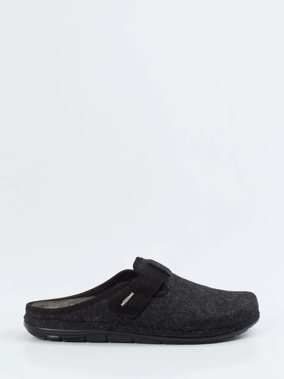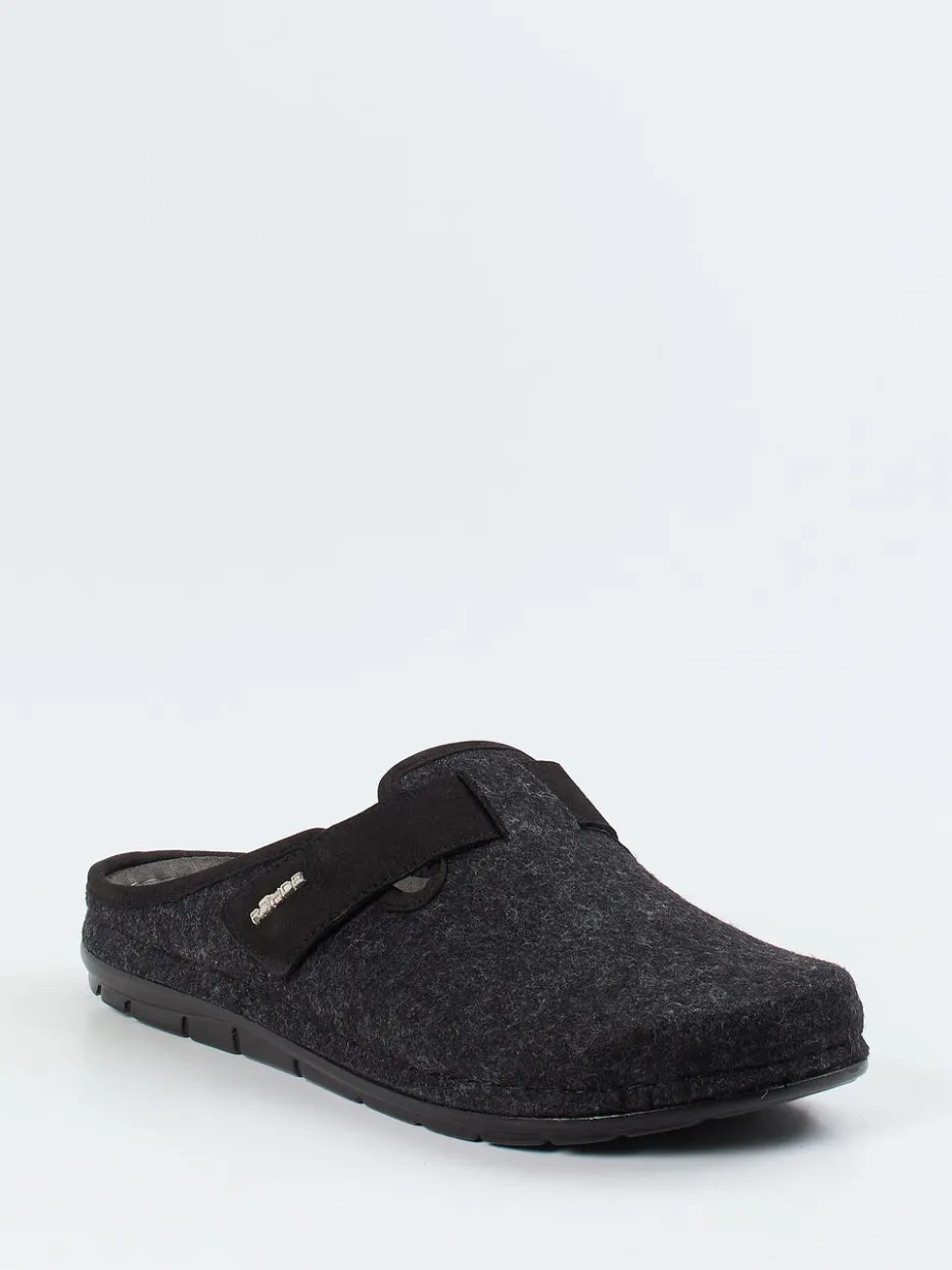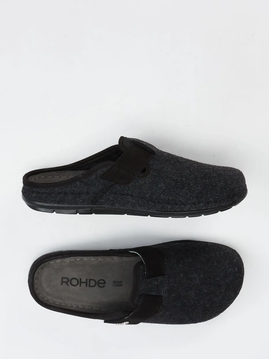 Schlicht designt, spürbar bequem.Die Marke Rohde präsentiert komfortable Filzpantoffeln für Herren, passend für entspannte Indoor-Momente. An kühlen Tagen sorgen das anthrazitfarbene Filzmaterial und die gepolsterte Innensohle mit Lederbezug für angenehme Wärme. Die geschlossene Vorderpartie mit offenem Fersenbereich wird durch einen funktionalen Klettverschluss ergänzt – ideal zur individuellen Weitenregulierung. Die profilierte Gummisohle mit integriertem Dämpfungselement absorbiert Stöße effektiv und unterstützt einen ergonomischen Auftritt. Das metallische Markenemblem verleiht dem minimalistischen Design eine dezente Wertigkeit. Kombinierbar mit Loungewear oder Wollsocken – für stilvoll-gemütliche Stunden. Ergonomiekonzept und langlebige Materialien stehen bei Rohde für bewussten Wohnkomfort.
