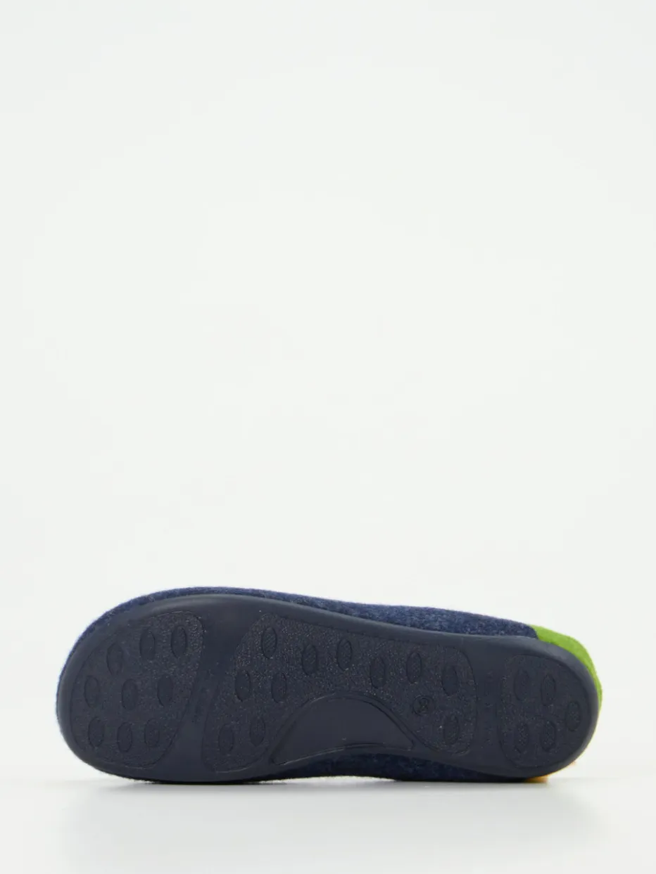 Dank des samtig-filzigen Filzmaterials sorgt das Modell für angenehme Wärme und ein behagliches Tragegefühl. Die dunkelblaue Farbgebung wird durch eine detailreiche Stickerei in Himbeerrosa und Moosgrün akzentuiert. Der offene Fersenbereich erleichtert das Hineinschlüpfen, während die biegsame, rutschhemmende Gummisohle sicheren Halt bietet. Die Innensohle ist weich gepolstert und unterstützt den Fuß bei jedem Schritt. Perfekt für stilbewusste Loungewear-Looks und wohlige Wintertage.