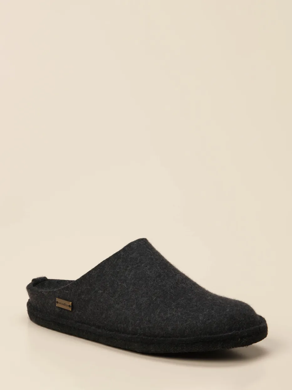 Haflinger zeigt mit diesen Pantoletten eine zeitlos minimalistische Interpretation klassischer Filzhausschuhe.