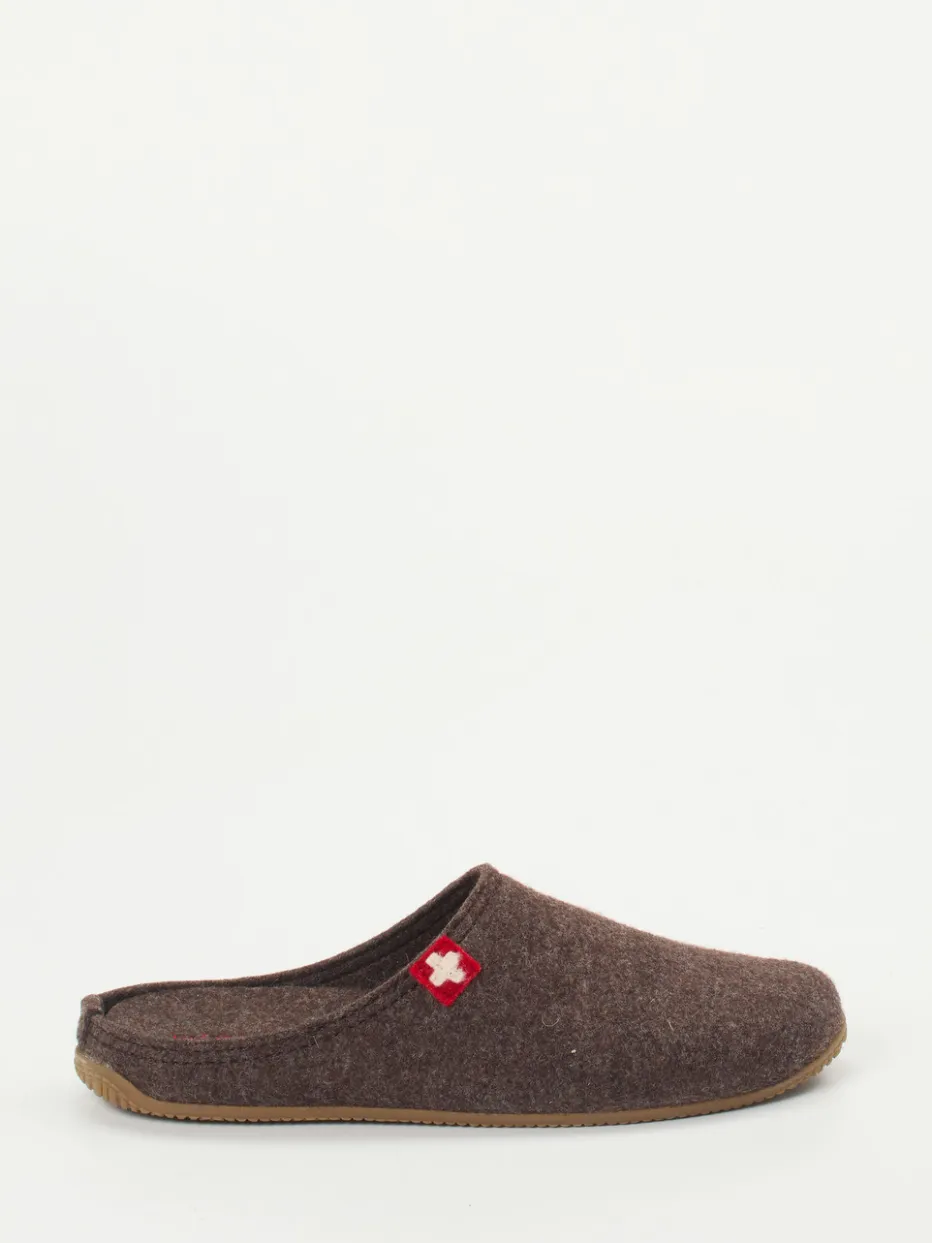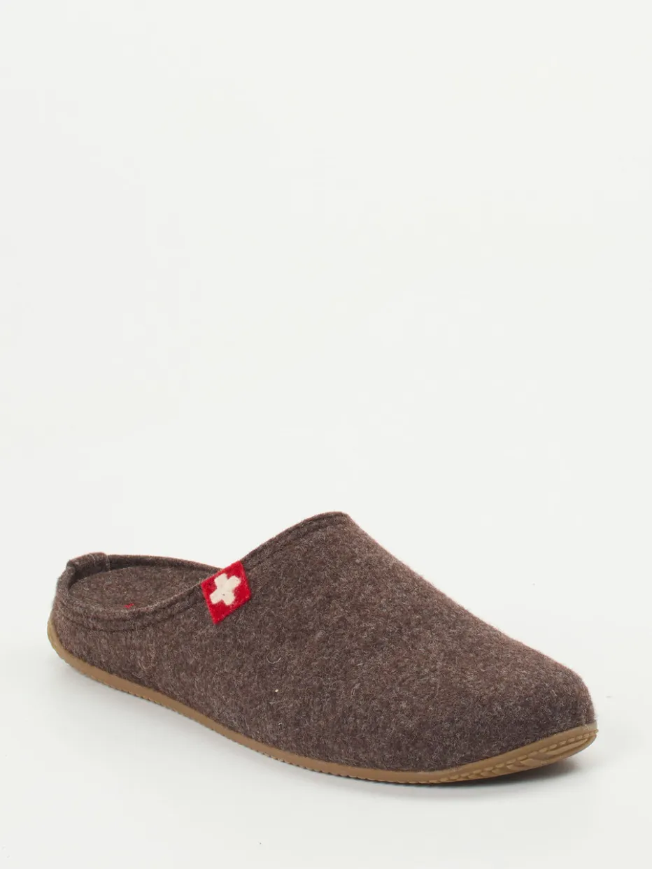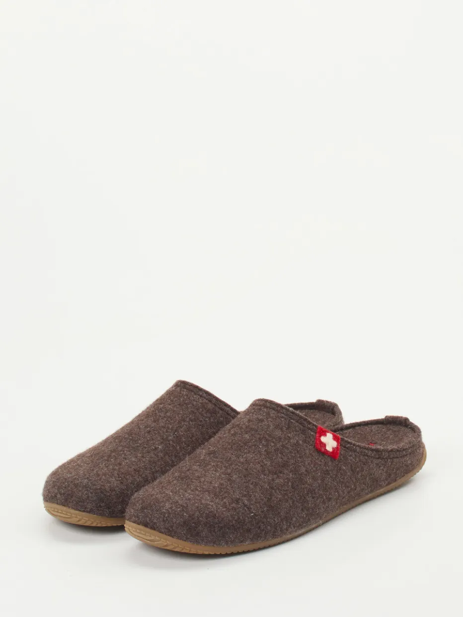 Diese Pantoffeln verbinden alpines Design mit nachhaltiger Materialwahl – angenehm warme Wolle trifft auf langlebige Flexibilität.
