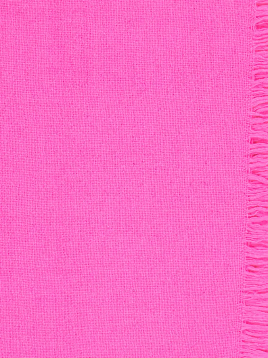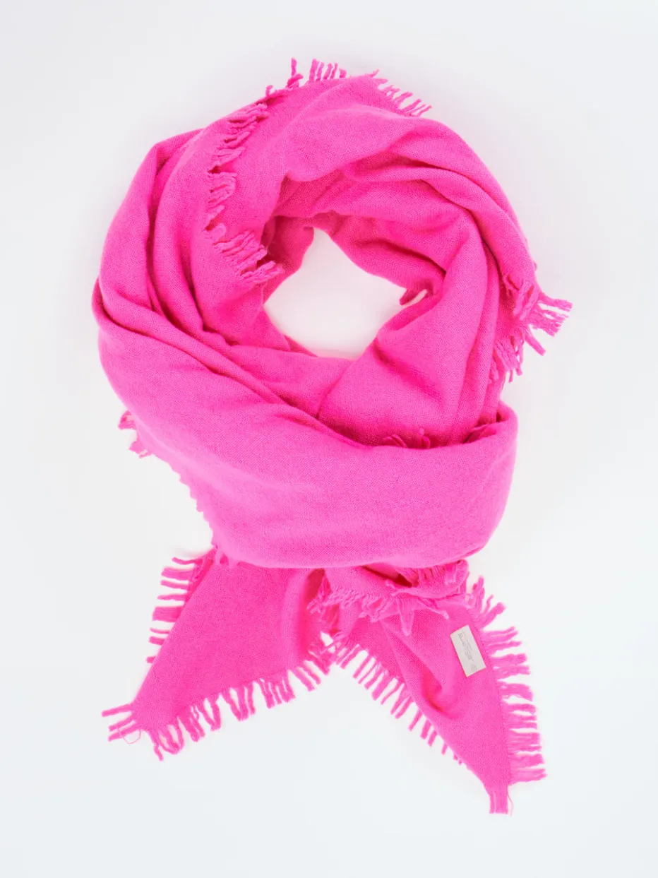 Dieser Fransenschal vereint softes Wolle-Kaschmir-Material mit einem ausdrucksstarken Pink – perfekt für trendbewusste Akzente im Alltag oder Urlaub.