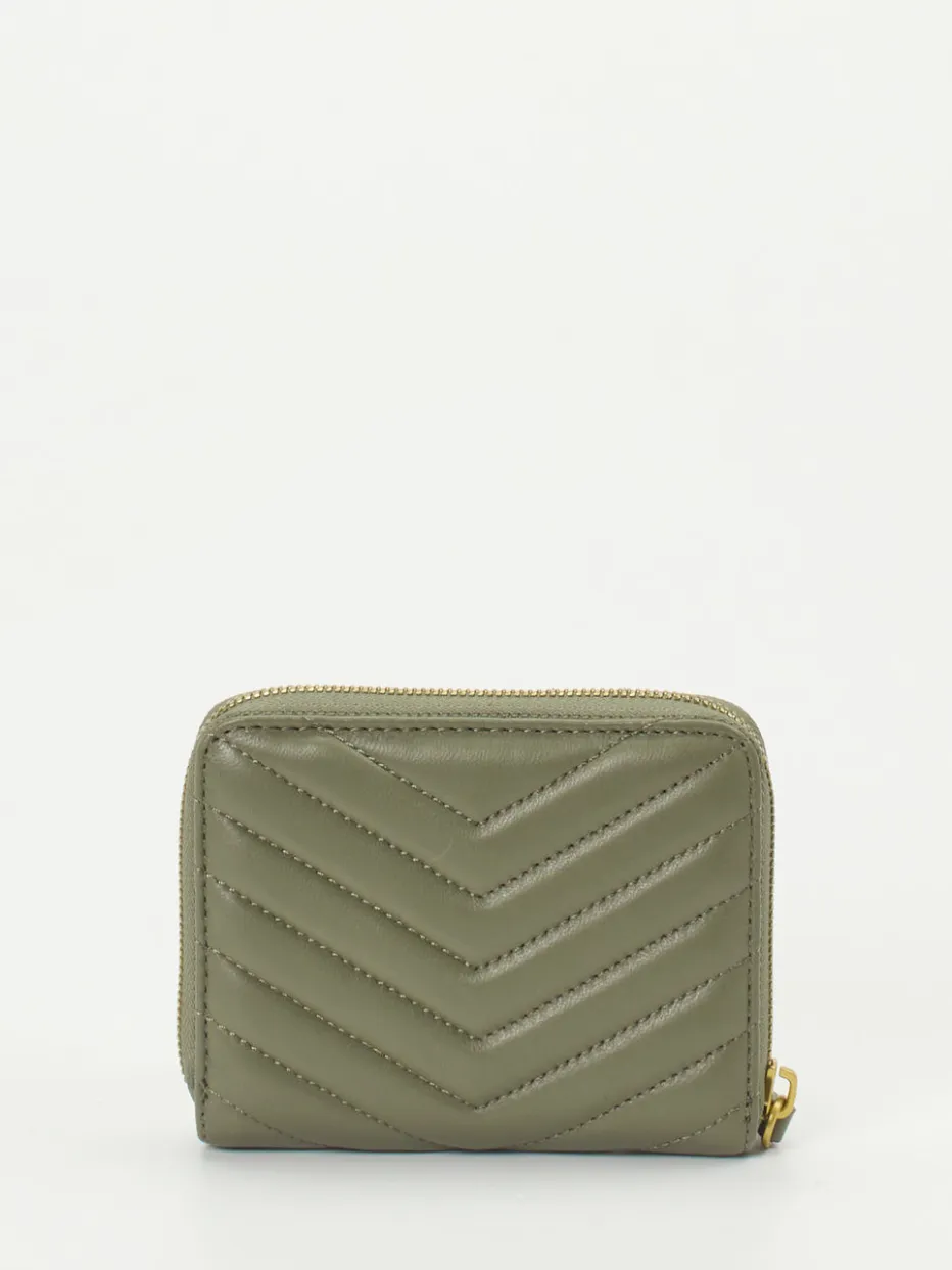 Diese kompakte Geldbörse vereint butterweiches Kalbleder mit moderner Chevron-Steppung und markantem Reißverschluss in Goldoptik – funktional sowie stilvoll.