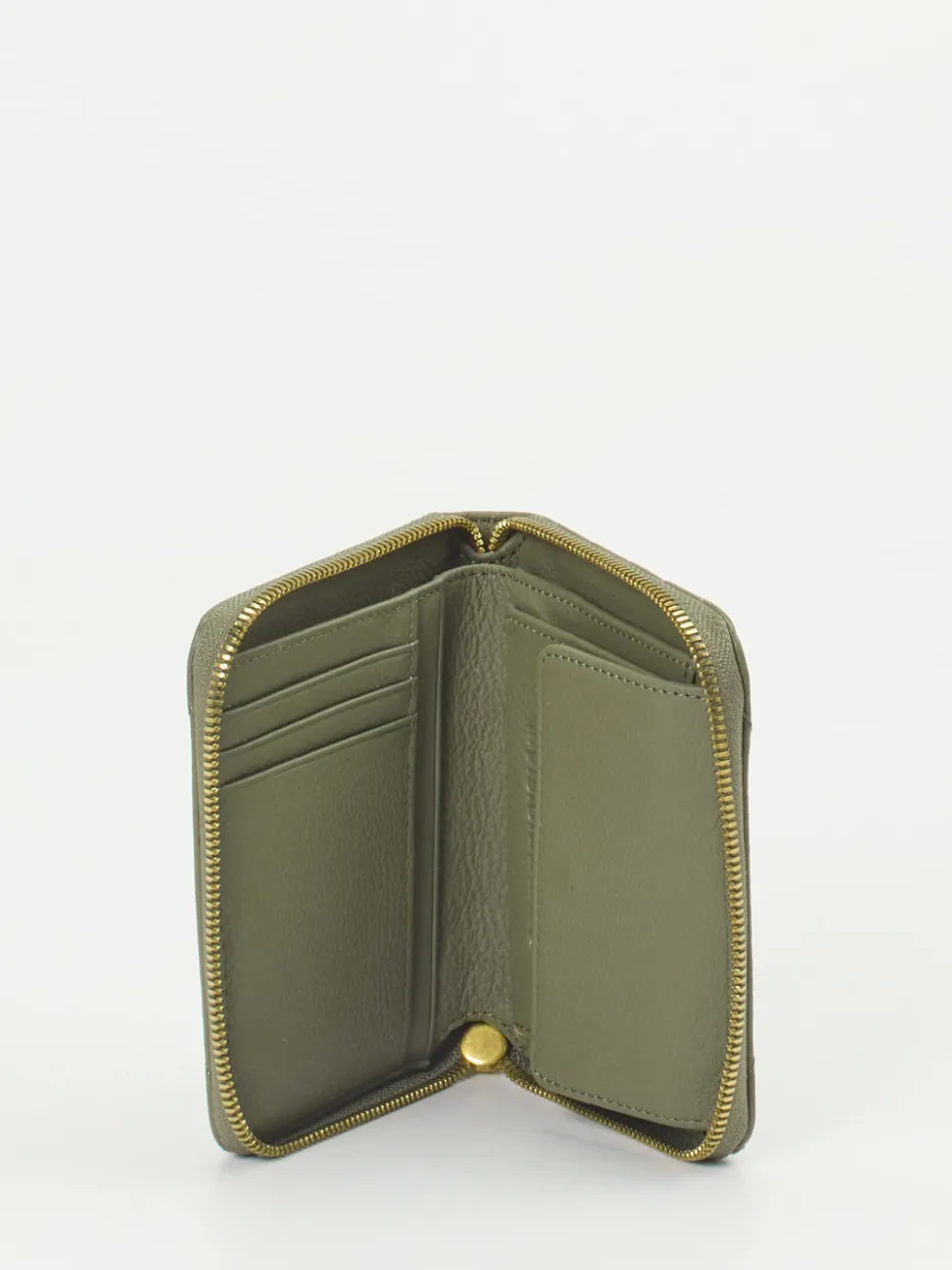 Diese attraktive Geldbörse wird von der Marke Les Visionnaires vorgestellt. Das hellgrüne Nappaleder ist butterweich und kommt durch das Steppnahtmuster optimal zur Geltung. Ein goldfarbener Reißverschluss komplettiert den Look. Der gut organisierte Innenraum bietet sicheren Platz für Ihre Scheine, Karten und etwas Münzgeld. – Obermaterial: Nappaleder – Futter: Textil/Leder – Farbe: Hellgrün – Größe: ca. 10 x 13 x 2,5 cm (H x B x T) – Verschluss: Reißverschluss – Innen: sechs Steckfächer, ein Geldscheinfach, ein Fach für Münzgeld mit Druckknopf – Außen: keine Fächer
