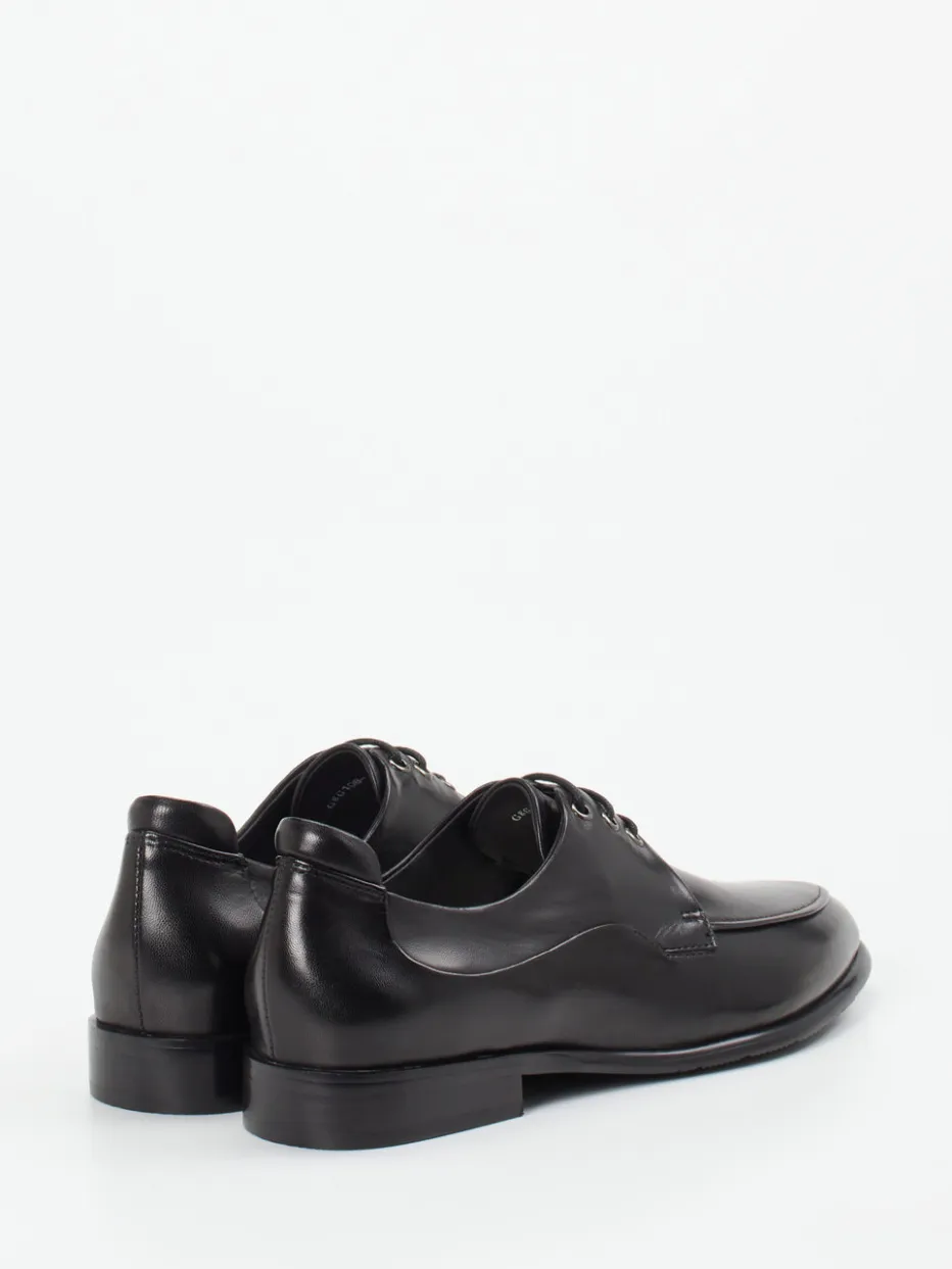 Feines Lammleder, elegante Glanzoptik und klare Silhouette verbinden sich in diesem Derby-Modell zur perfekten Ergänzung minimalistischer Business- und Casual-Looks.