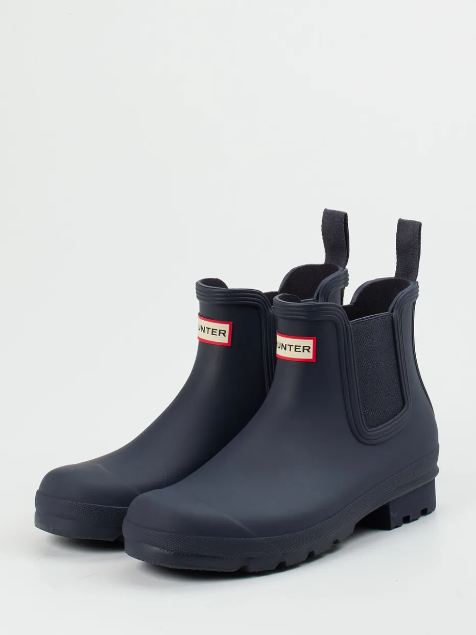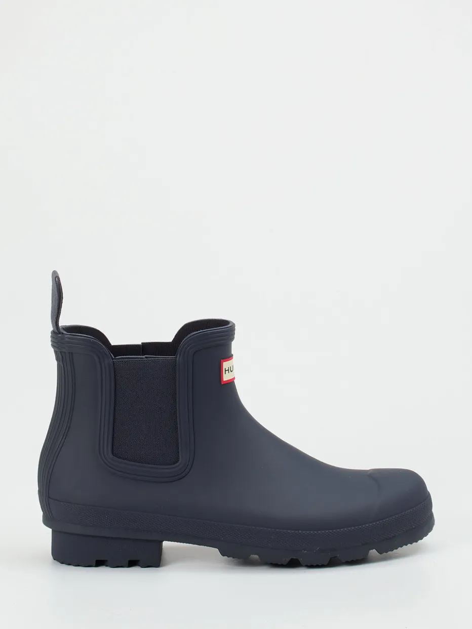 Unisex-Boot für urbane Regentage.Hunter präsentiert mit diesen Gummiboots eine moderne Chelsea-Variante im kompakten Format. Für Spaziergänge bei Nieselregen oder Festival-Ausflüge bietet das Modell hohe Funktionalität: Das matte Dunkelblau des Synthetikmaterials harmoniert mit elastischen Einsätzen und einem markanten Logo-Patch. Die profilierte Gummisohle mit strukturierter Fersenpartie gibt rutschfeste Stabilität. Schlupfform mit Zuglaschen ermöglicht schnelles An- und Ausziehen. Inspiriert vom British Heritage zeigt sich hier ein wetterfester Look mit Outdoorcore-Attitüde. Hunter verbindet robusten Wetterschutz mit urbaner Lässigkeit.